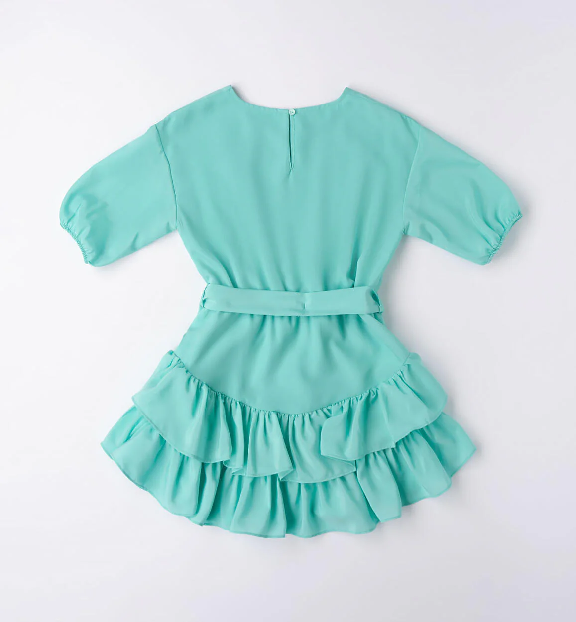 Abito a balze con cintura ragazza iDO tinta unita acqua