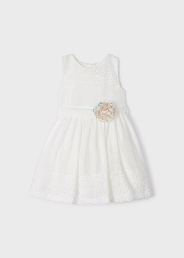 Abito guipure effetto lino bambina Mayoral bianco fiore