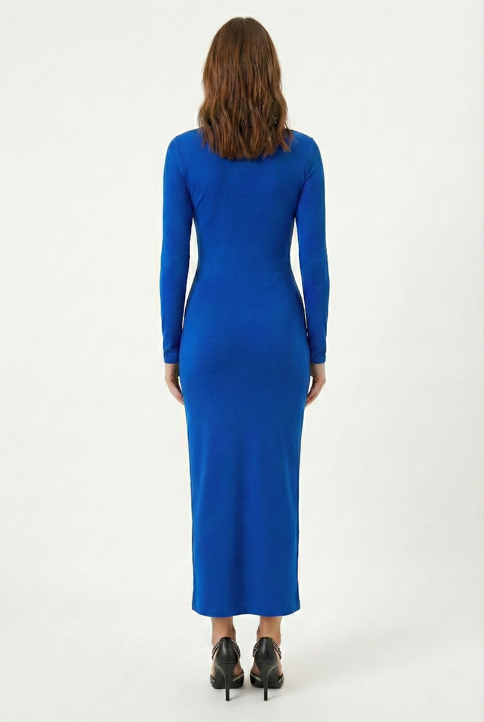 Abito lungo elasticizzato con cut-out e maniche lunghe