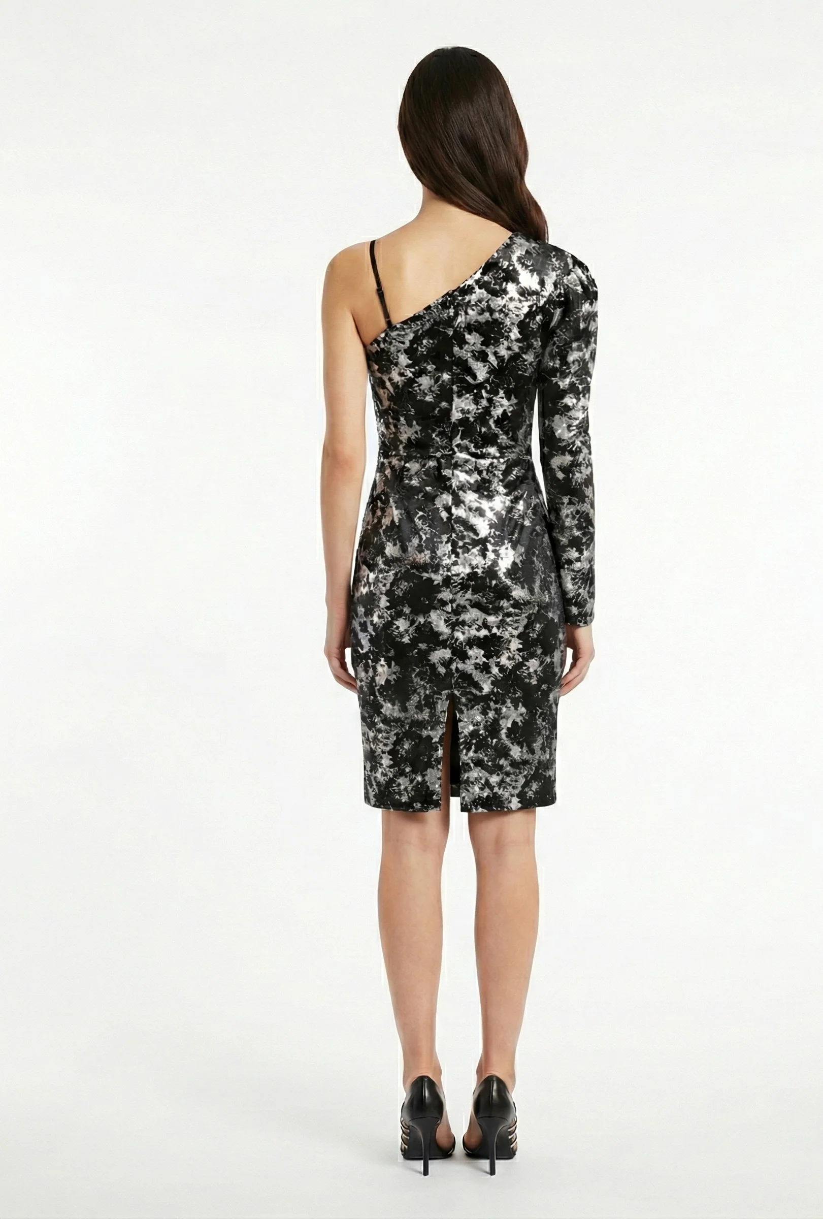 Sensuale, raffinato e di grande impatto: questo abito donna elegante monospalla รจ il capo ideale per occasioni speciali, eventi serali e cerimonie. Il design asimmetrico con una spallina sottile e una manica lunga crea un equilibrio perfetto tra modernitร e femminilitร , valorizzando la figura con una linea aderente e sofisticata.