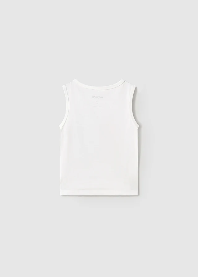 Maglietta smanicata per neonato. Girocollo. Tessuto 99% cotone. Elementi decorativi: Serigrafia (print). Stampa estiva. Scegliendo i nostri prodotti in cotone, supporti il nostro impegno nell’iniziativa Better Cotton.