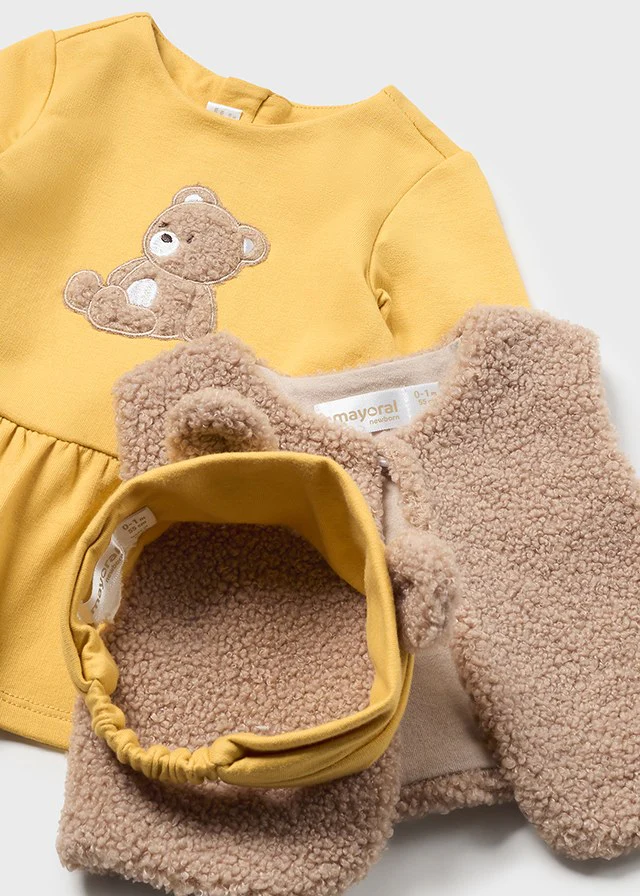 Completo 3 pezzi gilet pellicciotto neonata Mayoral Newborn