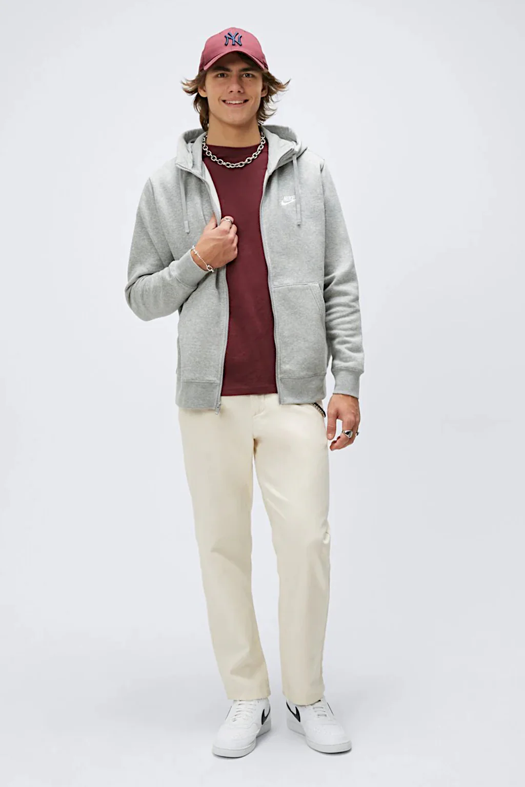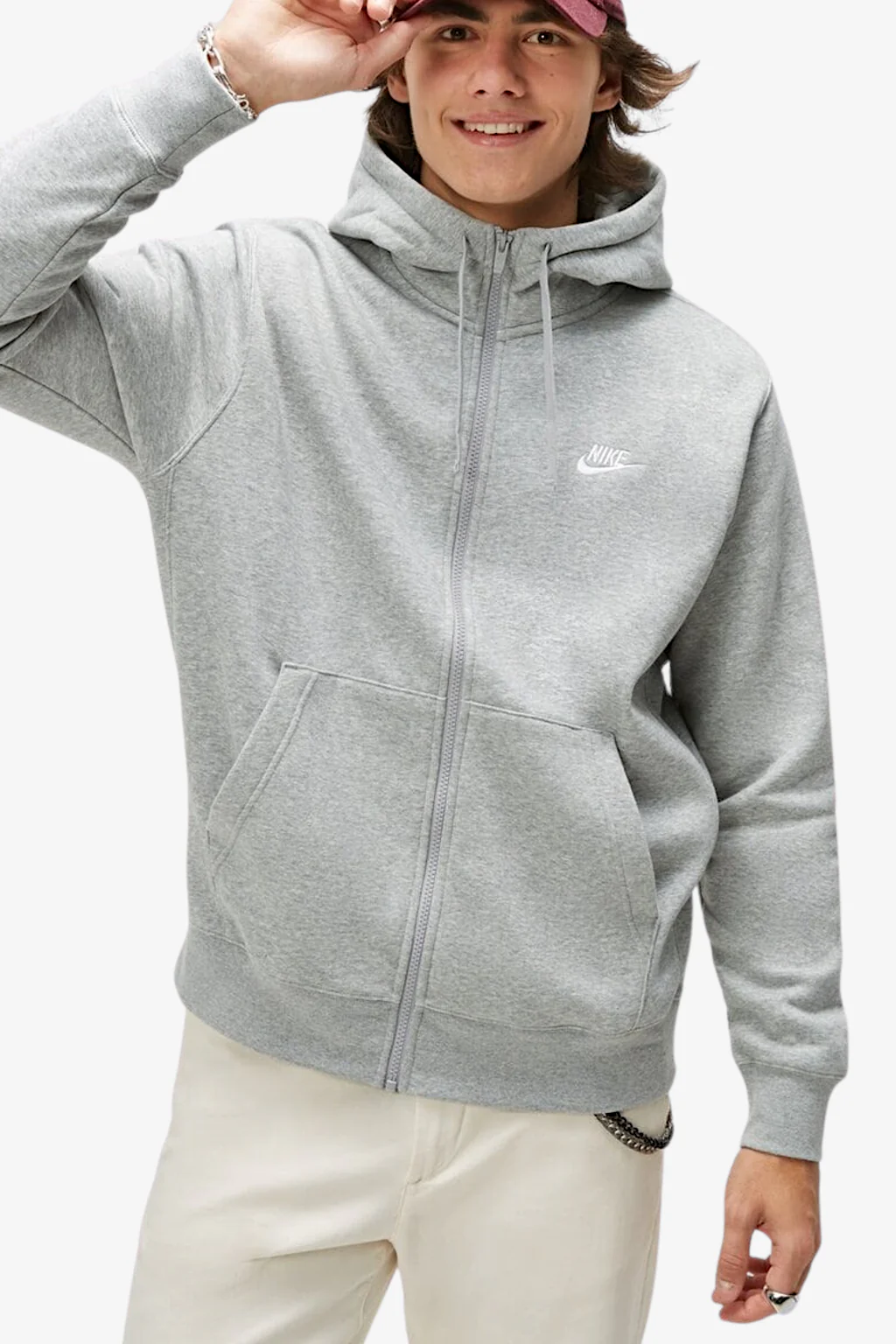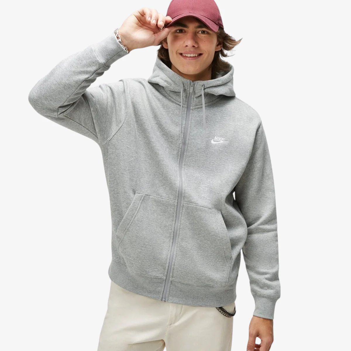 La felpa con cappuccio Nike Sportswear Club Fleece combina un morbido tessuto con uno stile street essenziale, versatile e perfetto per tutti i giorni. Grazie alla zip a tutta lunghezza che arriva fino al mento, è lo strato ideale per le giornate fredde.