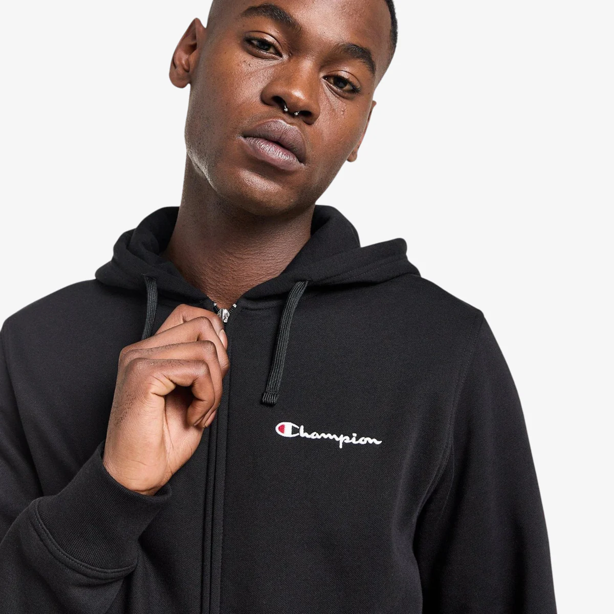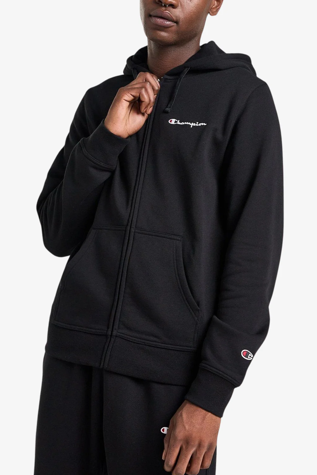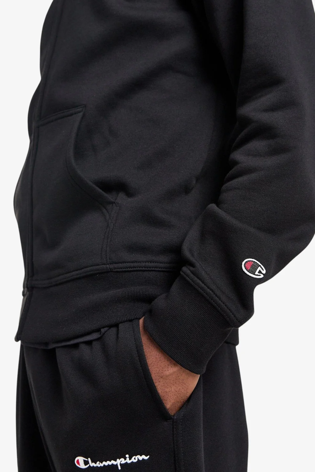 - Logo Champion piccolo ricamato sul petto, patch con logo C ricamato sulla manica sinistra