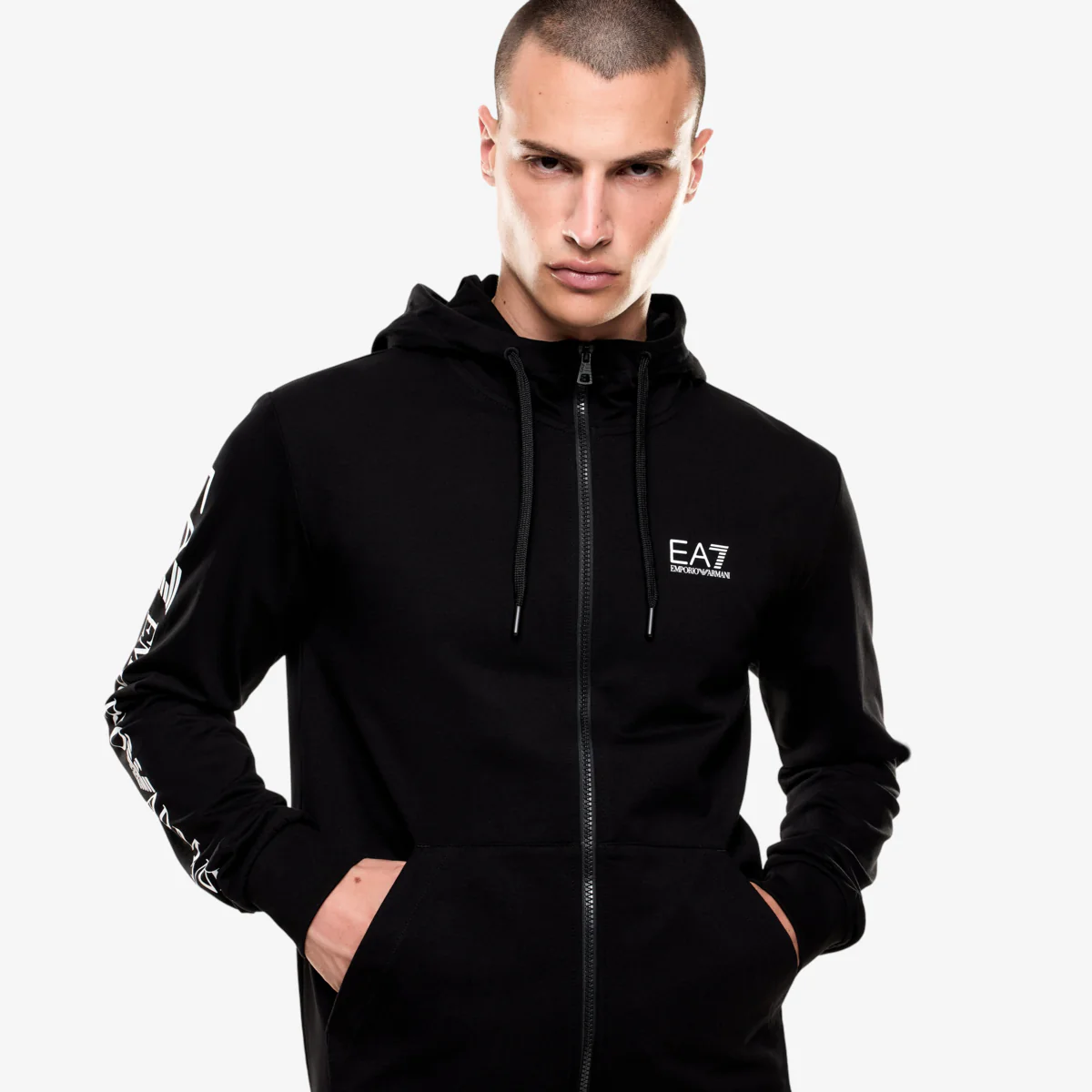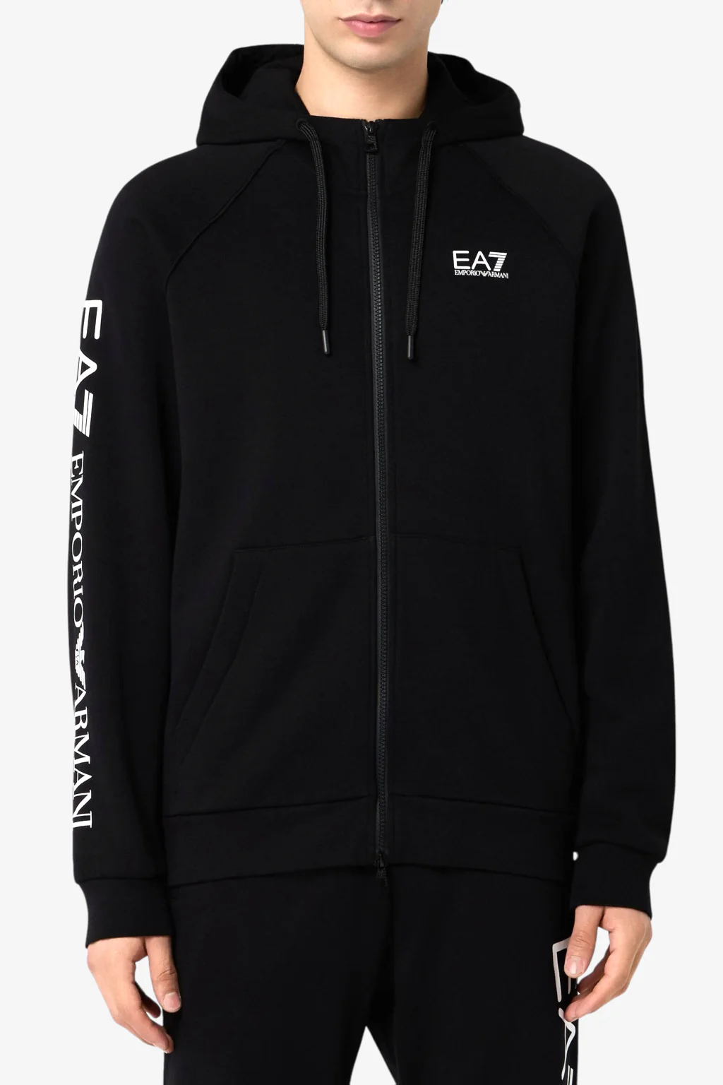 - Logo EA7 stampato sul fronte della felpa all’altezza del cuore
