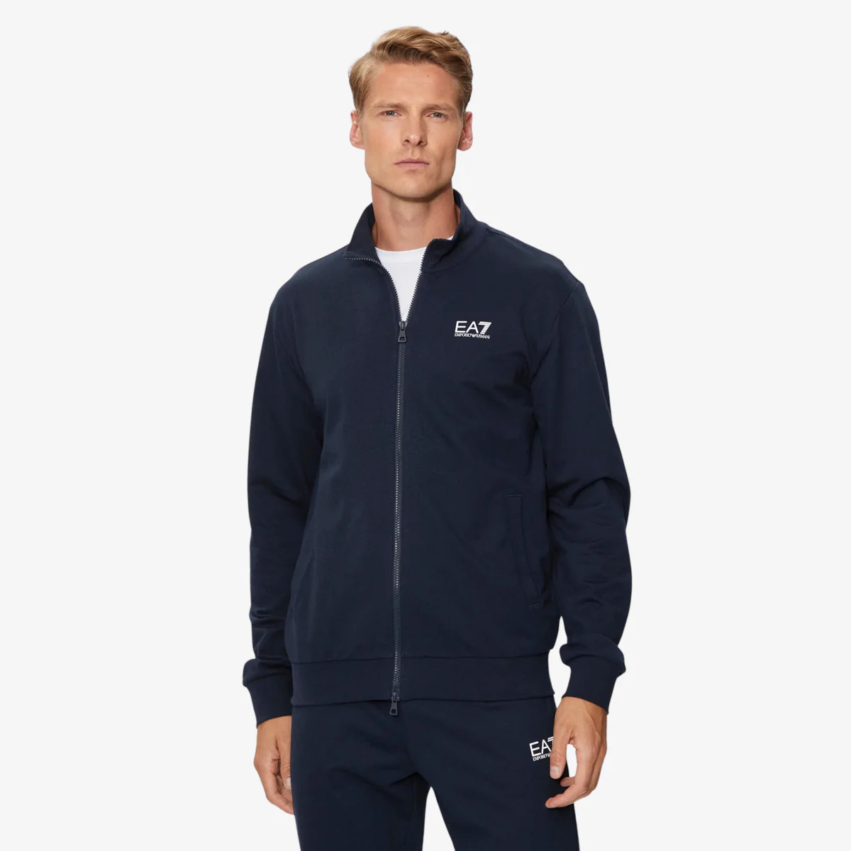Felpa con zip realizzata in cotone, dalla vestibilità regolare, personalizzata dal logo EA7 in contrasto sul petto. Un modello sempre attuale, portavoce dello spirito sportivo ma ricercato del brand, adatto non solo per lo sport, ma anche per completare look dallo stile rilassato e casual.