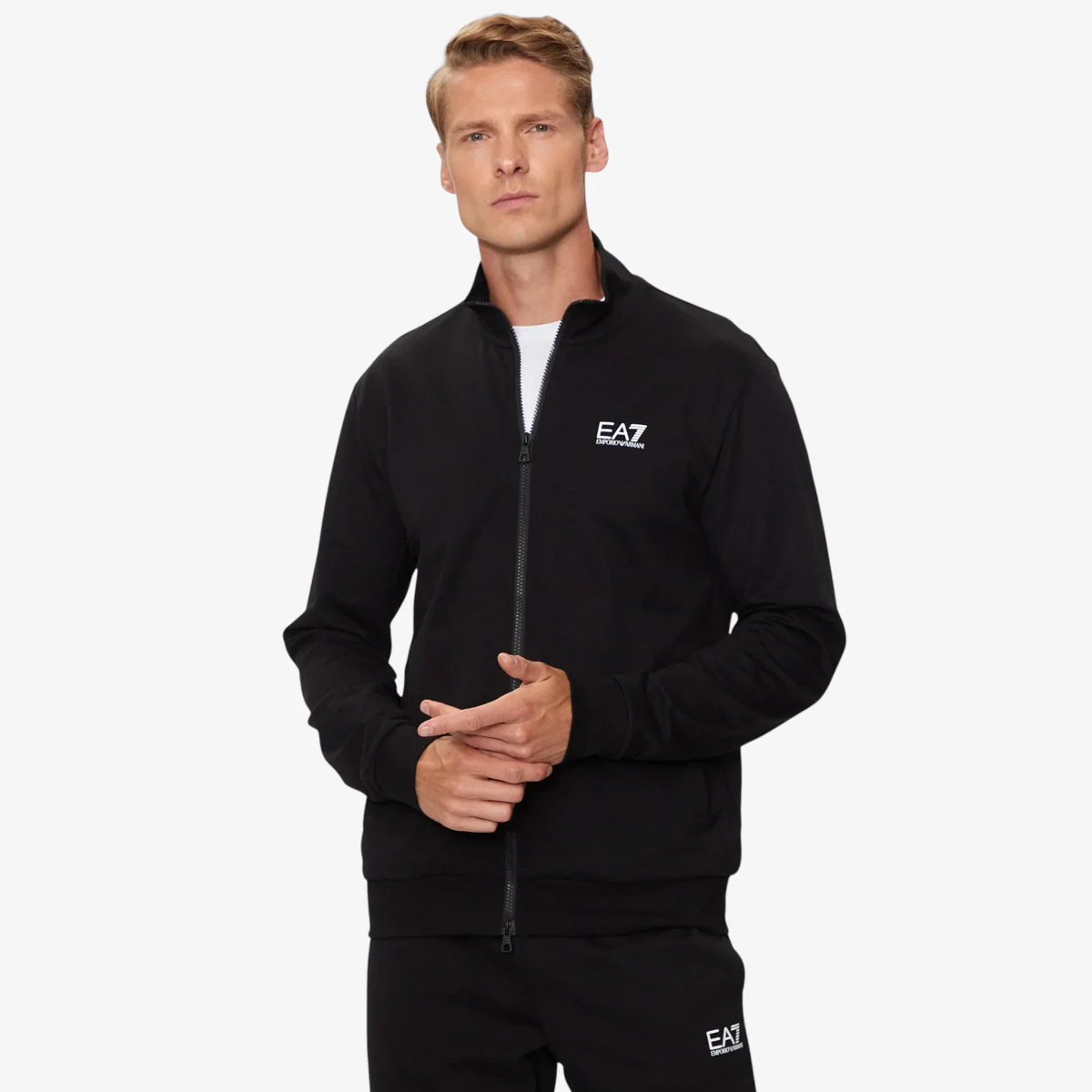 Felpa con zip realizzata in cotone, dalla vestibilità regolare, personalizzata dal logo EA7 in contrasto sul petto. Un modello sempre attuale, portavoce dello spirito sportivo ma ricercato del brand, adatto non solo per lo sport, ma anche per completare look dallo stile rilassato e casual.