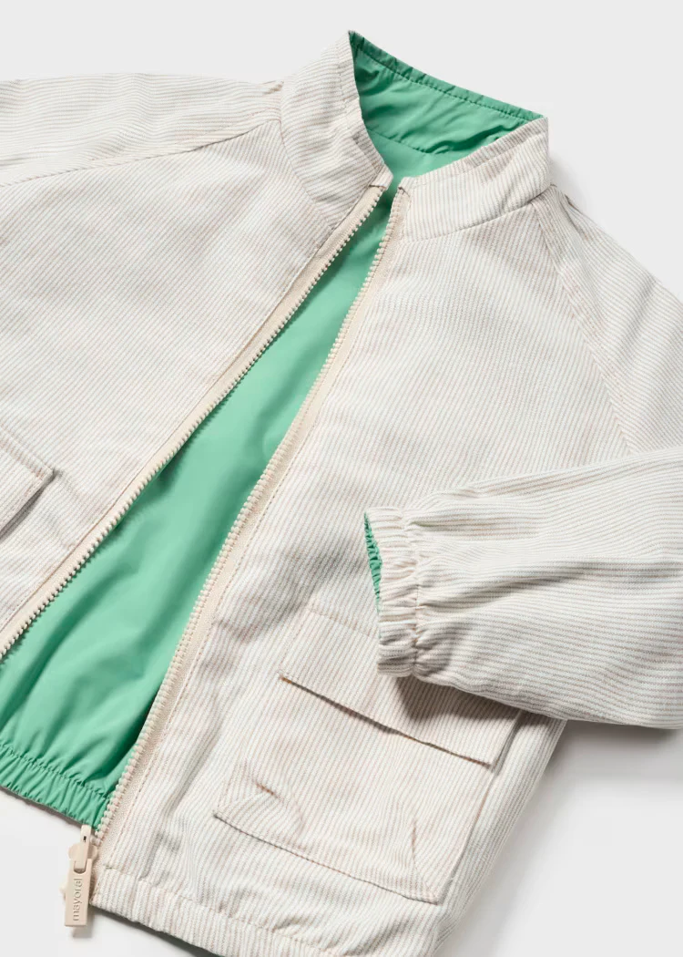 Giacca a vento reversibile neonato Mayoral verde-beige righe