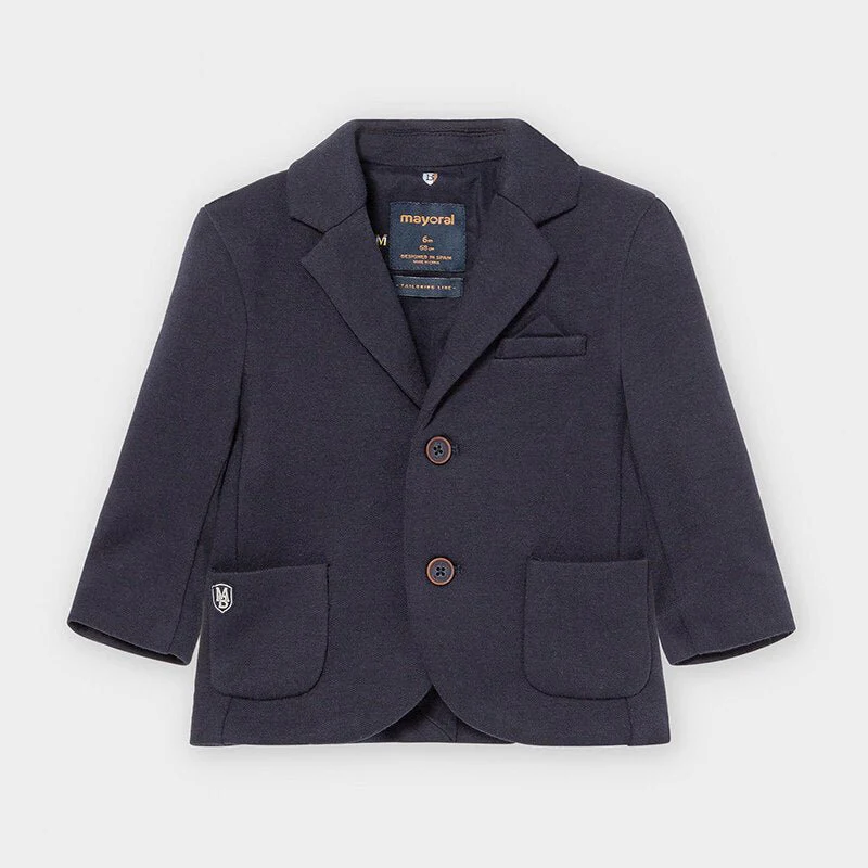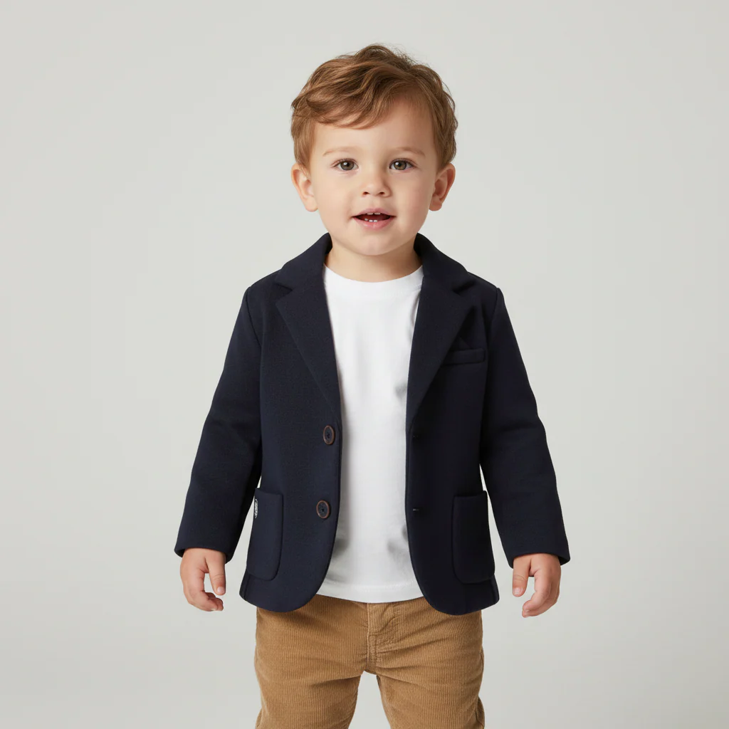 Una splendida giacca elegante per neonato, ideale per le occasioni speciali, dal design liscio e con tasche funzionali nella parte anteriore ad impreziosire il look.