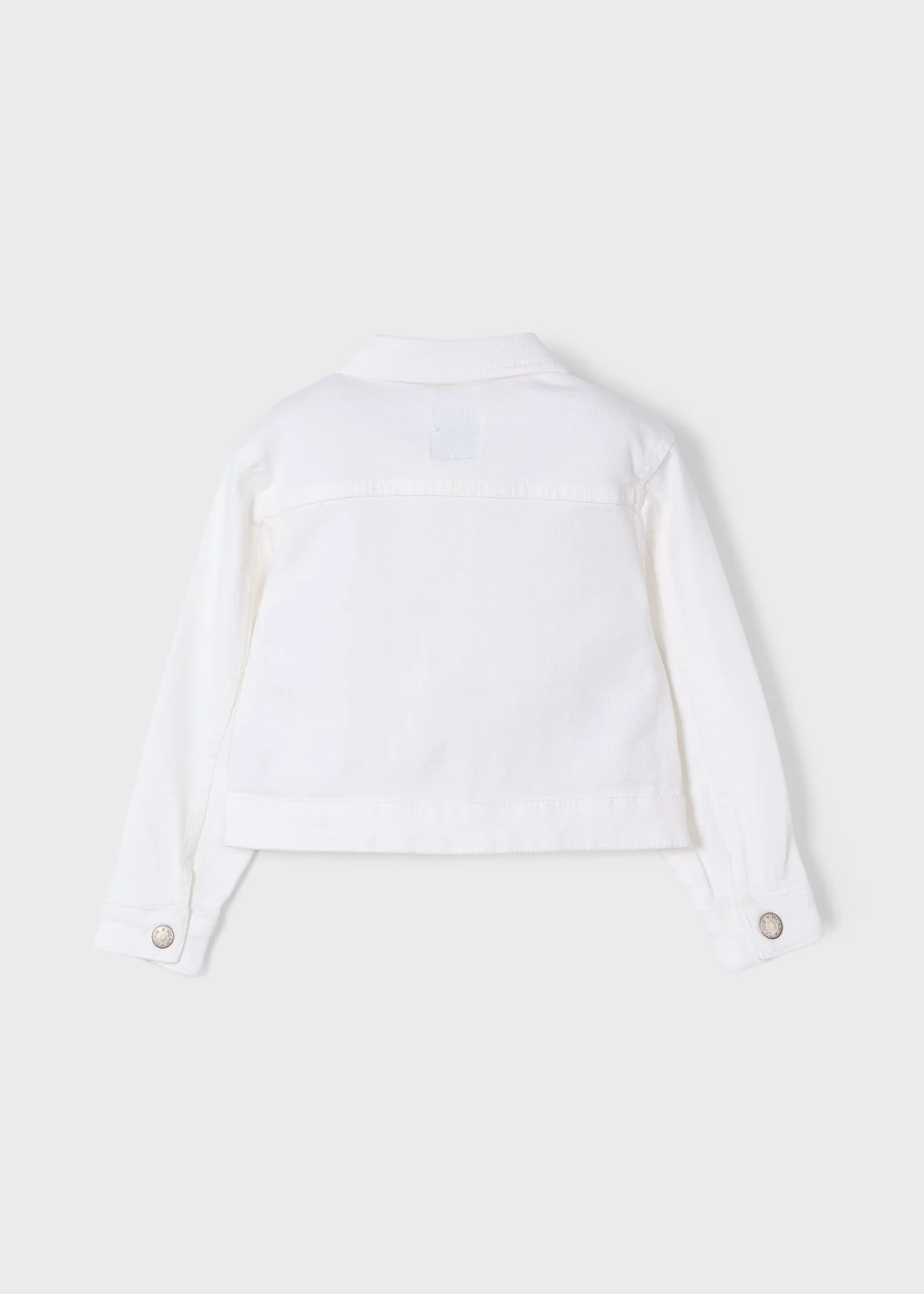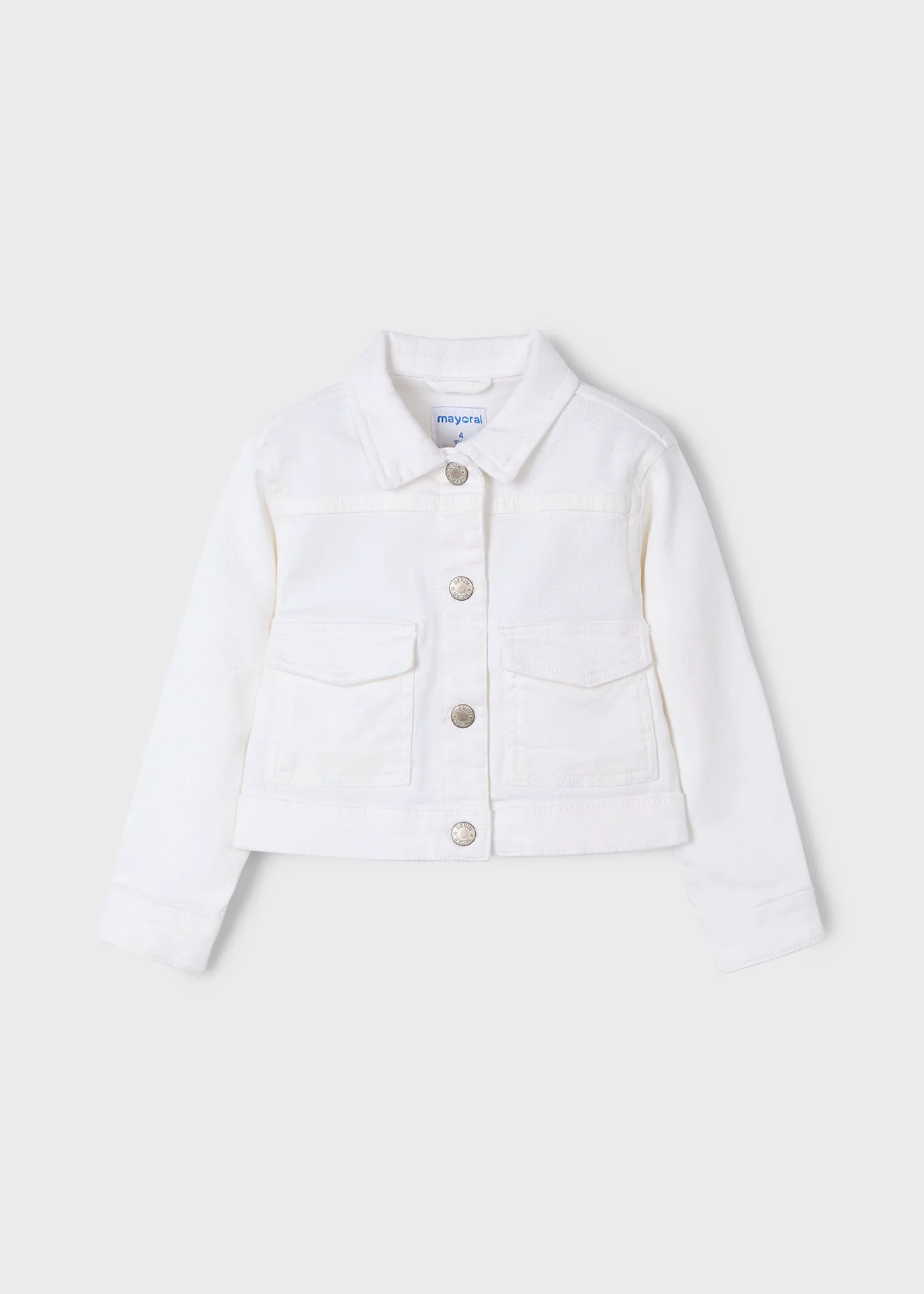 Giubbotto manica lunga per bambina. Chiusura con bottoni nella parte anteriore. Comodo tessuto in twill resistente. Tasche funzionali nella parte anteriore.