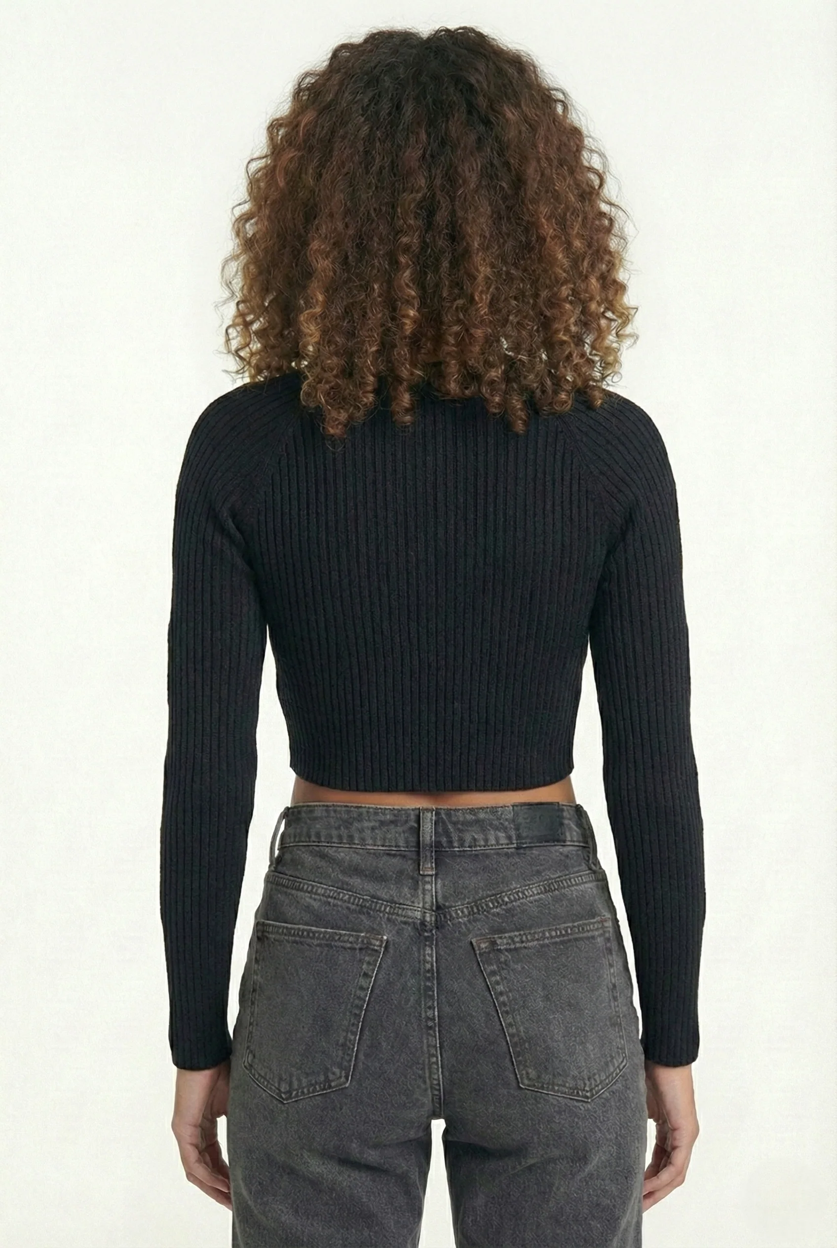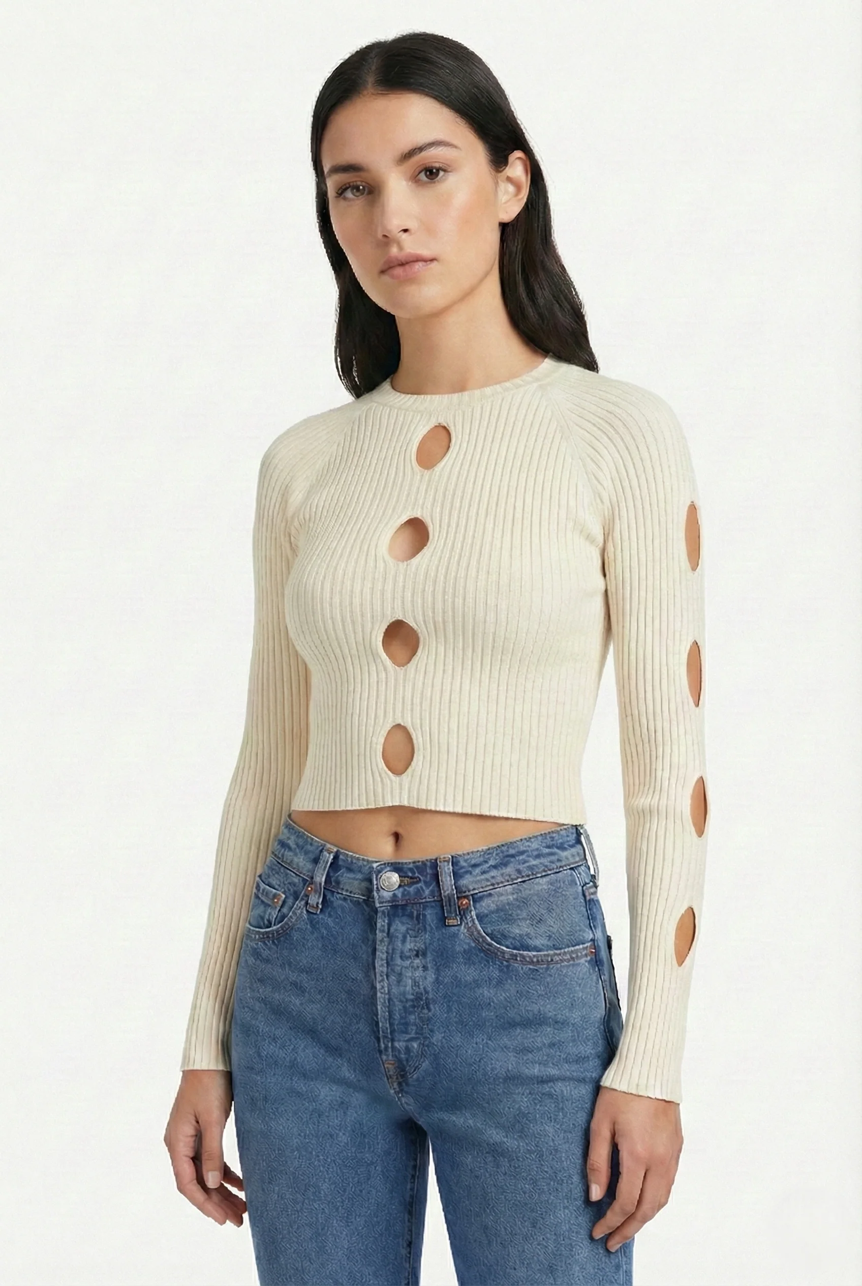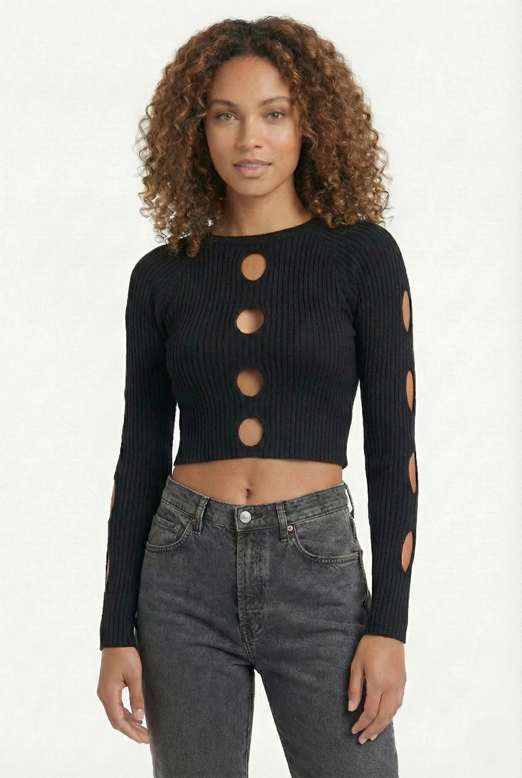 Maglia crop cut out donna a costine – Top maniche lunghe con aperture frontali e sulle braccia