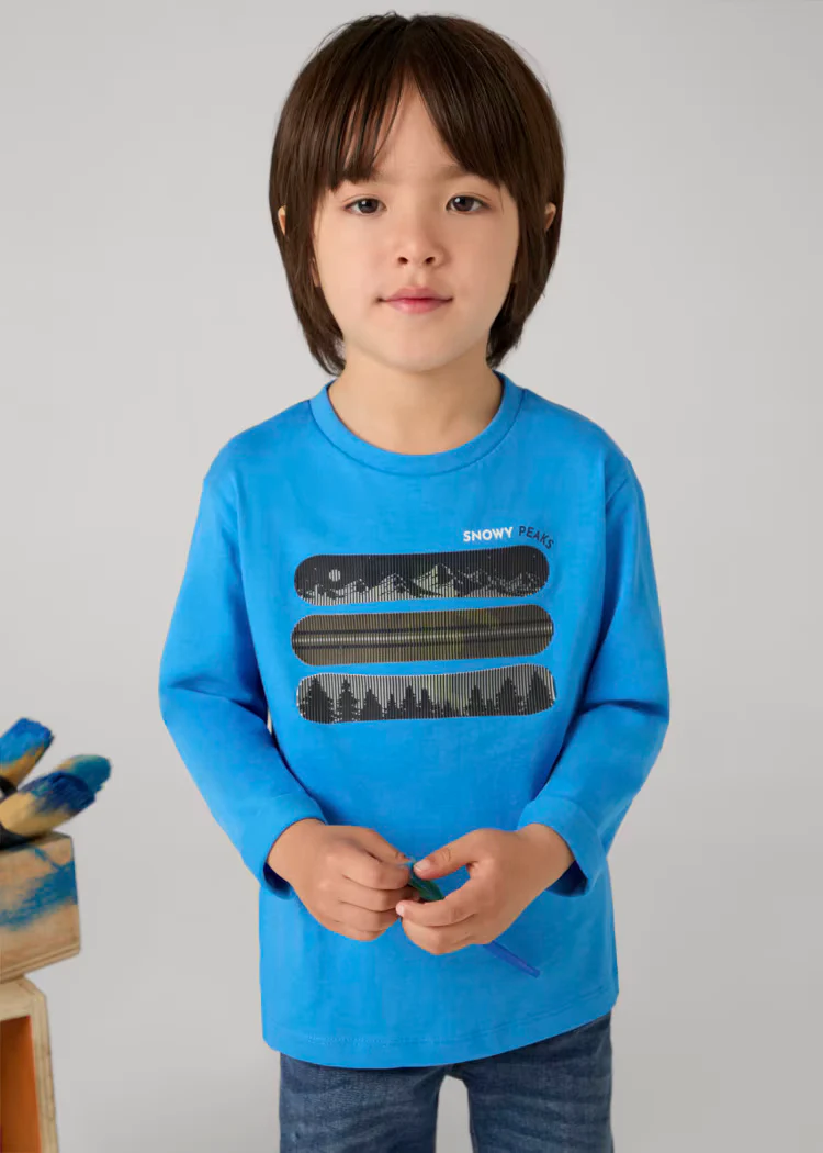 Maglietta caldo cotone bambino Mayoral “Snowboard” lenticolare blu