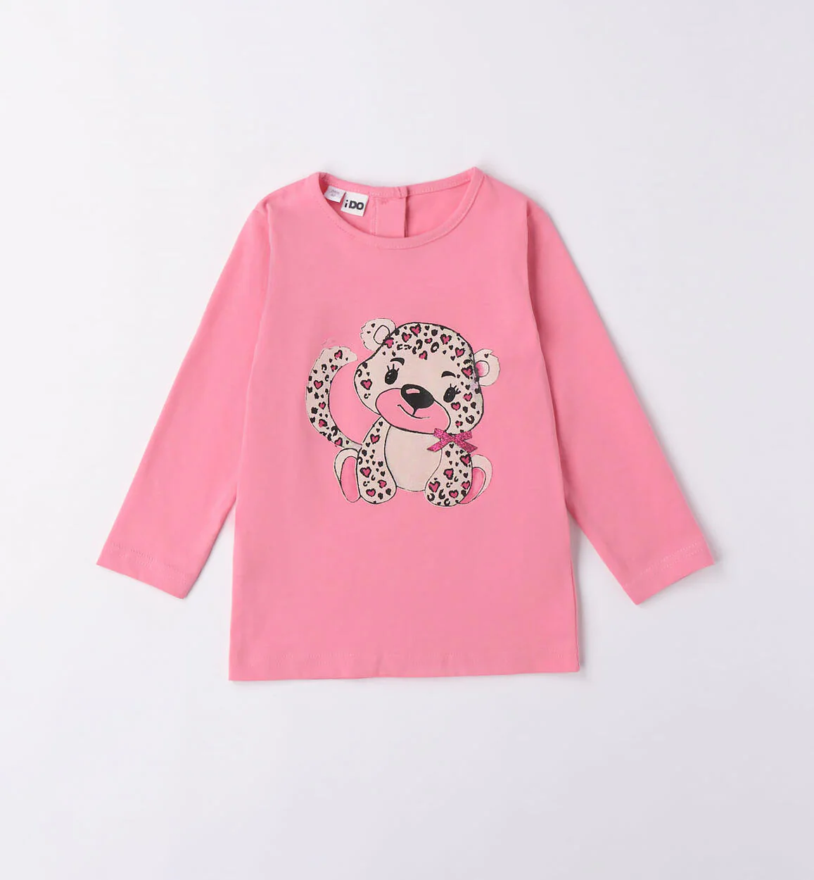 Maglietta iDO per bambina modello girocollo in jersey 100% cotone, mano calda, con stampa tigrotto. Apertura dietro con bottoni