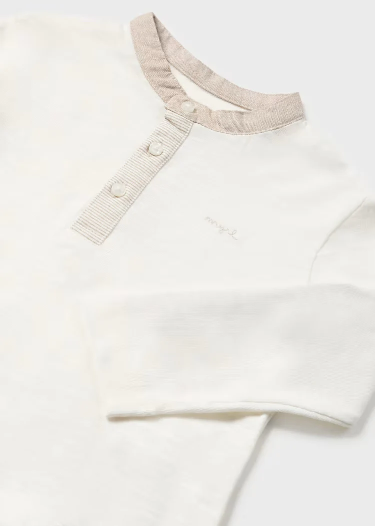 Maglietta manica rull-up fresco cotone neonato Mayoral panna