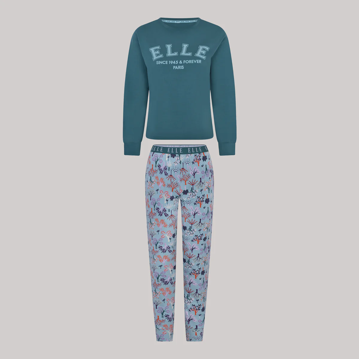 Un pigiama lungo donna della collezione ELLE in cotone elasticizzato: pantaloni jogger stampati con ampio elastico in vita con logo ELLE. Un pigiama leggero e morbido sulla pelle, ideale per farti compagnia nei momenti di relax e di riposo. Un vero must have per il tuo armadio!