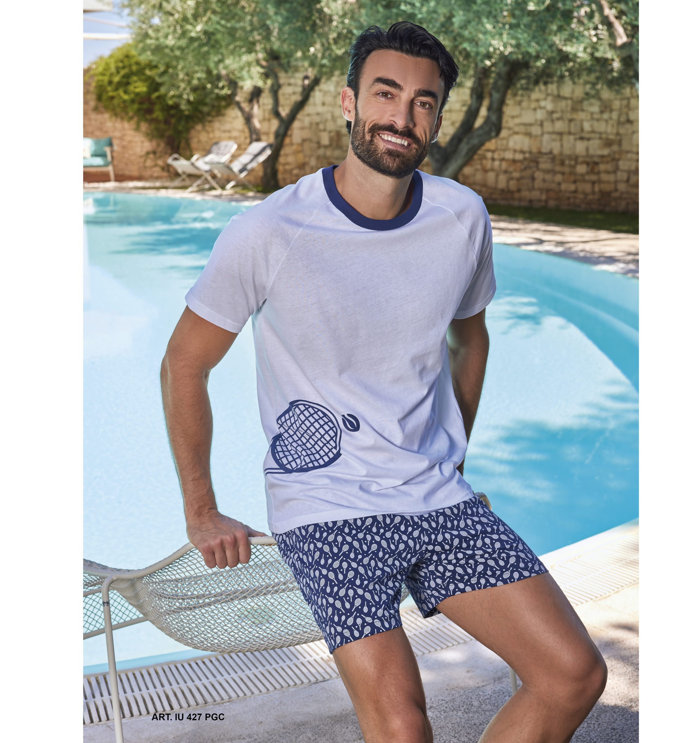 Pigiama uomo estivo con stampa tennis e pantaloncino fantasia