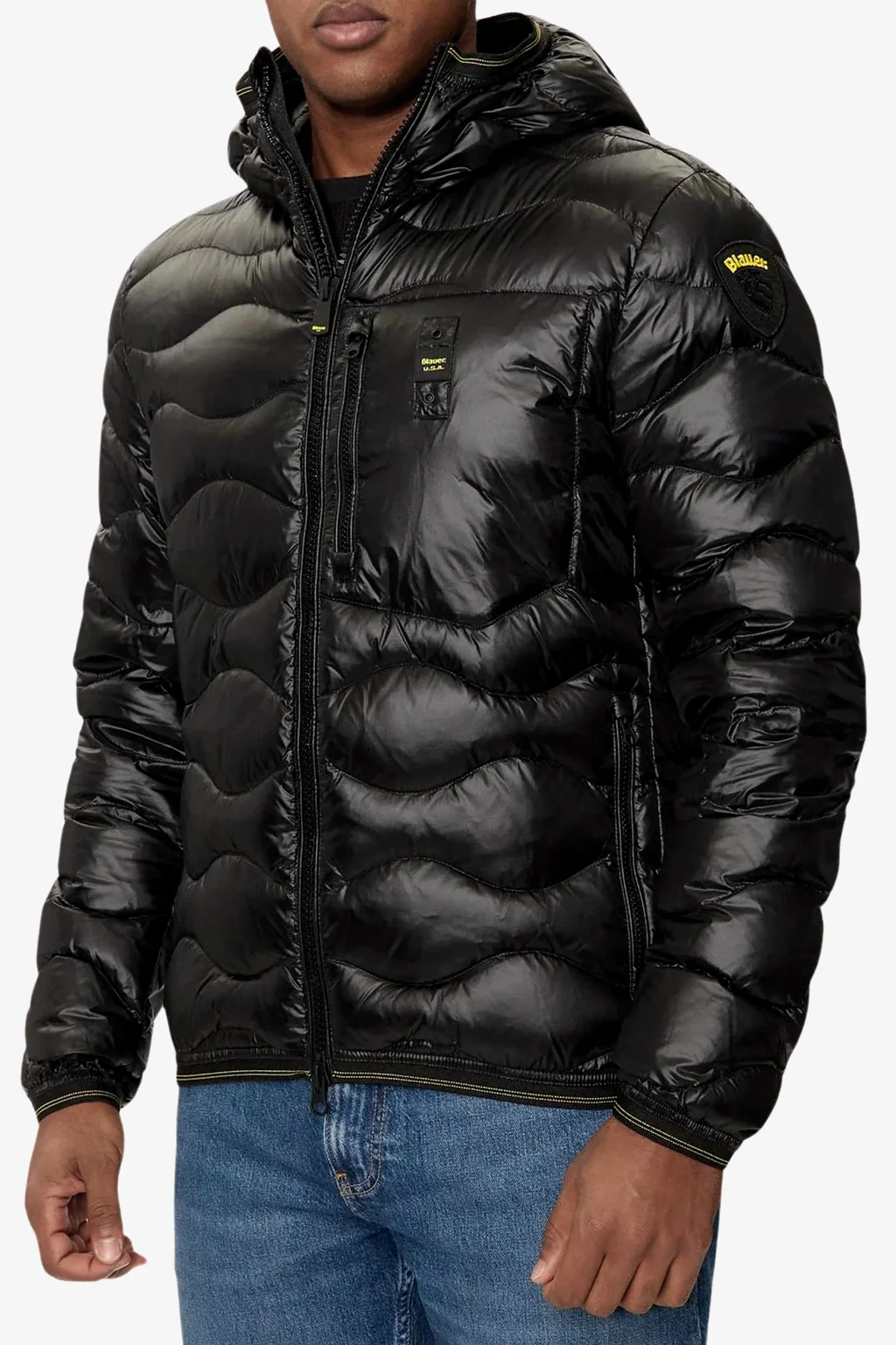 Piumino Full Zip Con Cappuccio Cuciture Ad Onde Wave