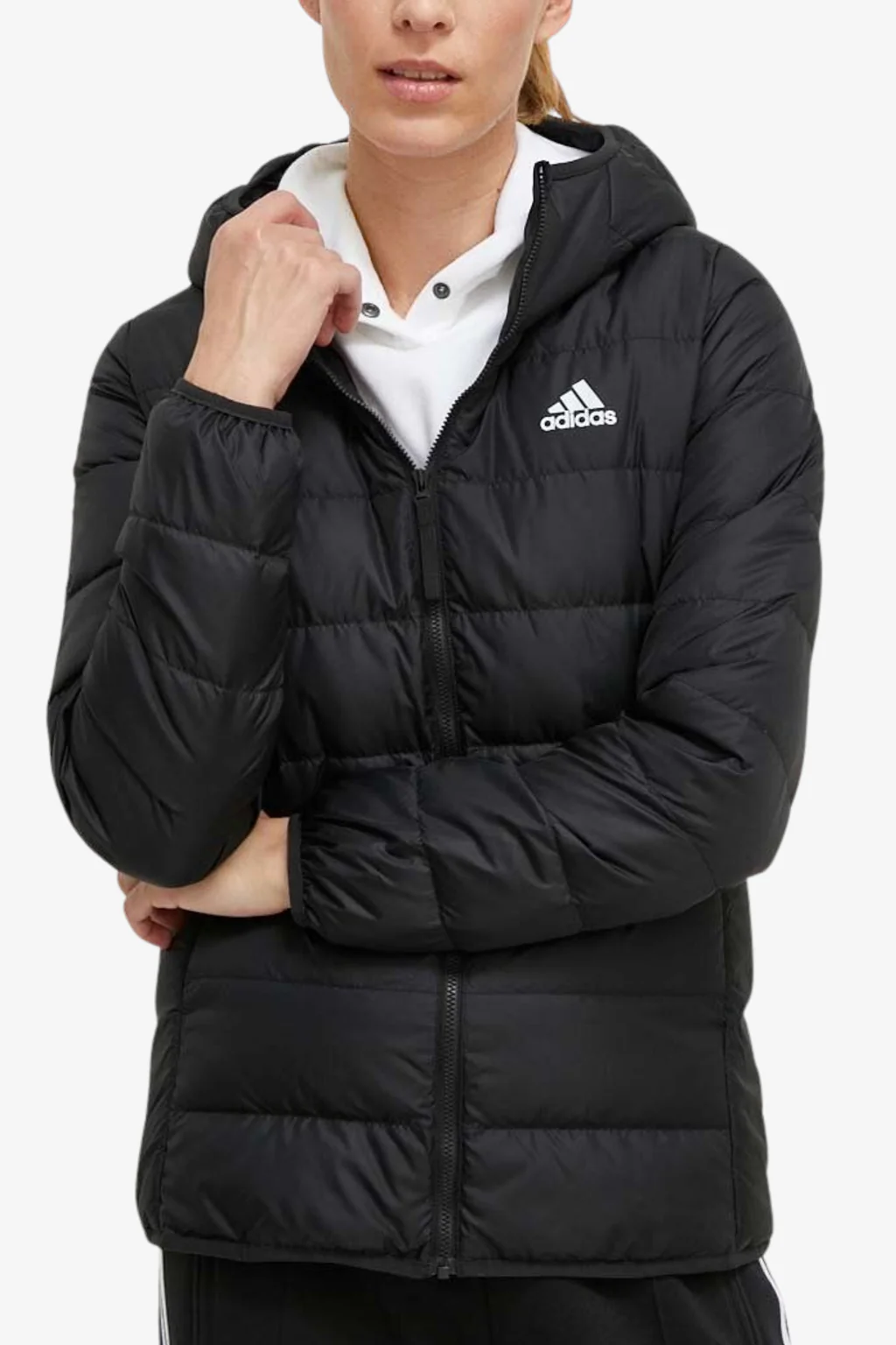 Piumino adidas Performance da donna Caratteristiche del piumino: Piumino trapuntato leggero Logo adidas sul petto Due tasche laterali Cappuccio fisso Collo alto Full zip Orlo e polsini elasticizzati