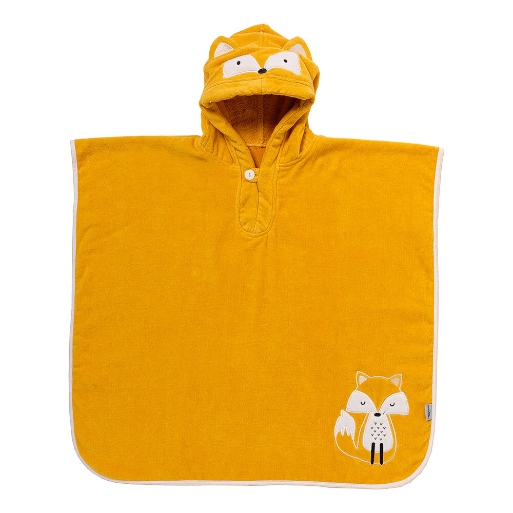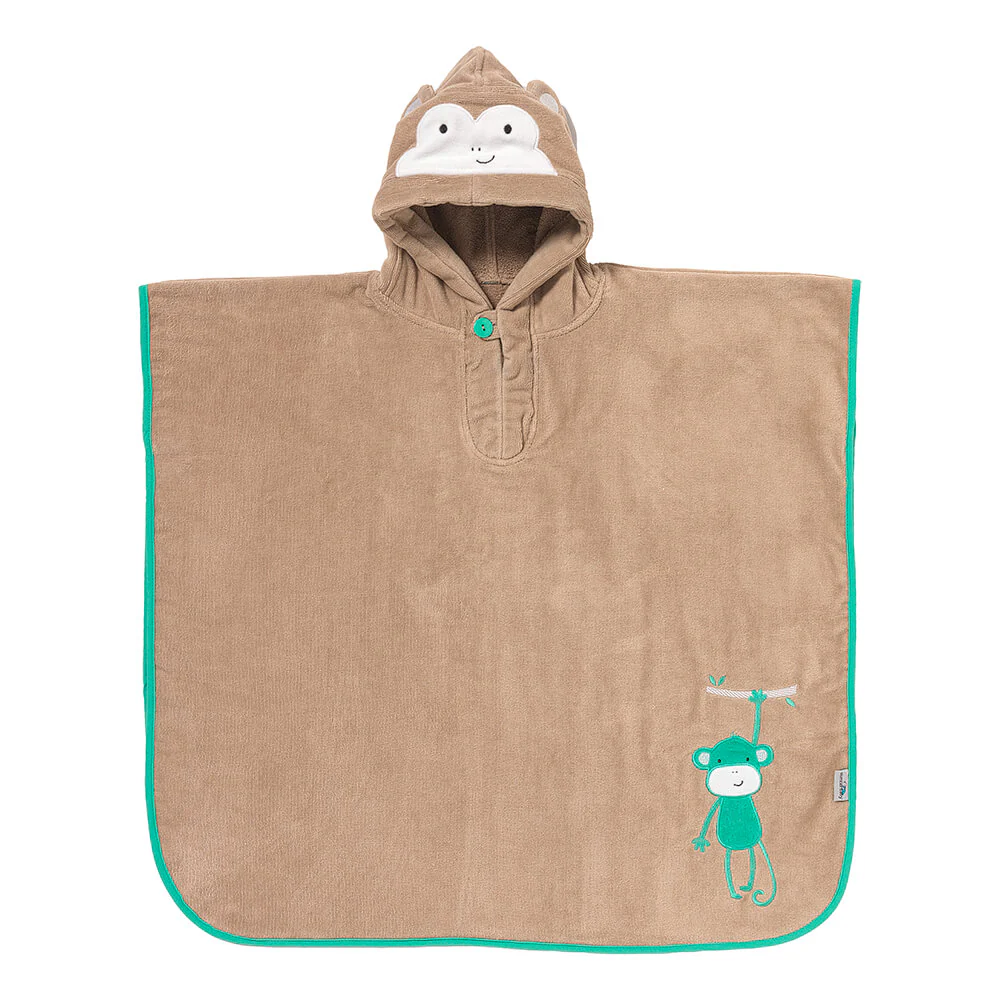 Comodo cappuccio con dettagli del mondo animale Bottoni davanti per una comoda vestibiltรก Elastici sicuri sotto le ascelle Assorbente, traspirante e morbido Taglia 1-3 anni: Lar: 62 cm x L: 47 cm, Taglia 4-8 anni: Lar: 70 cm x L: 75 cm