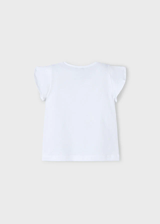 Maglietta manica corta con volant per bambina. Elementi decorativi: disegno nella parte anteriore. Scegliendo i nostri prodotti in cotone, supporti il nostro impegno nell’iniziativa Better Cotton.