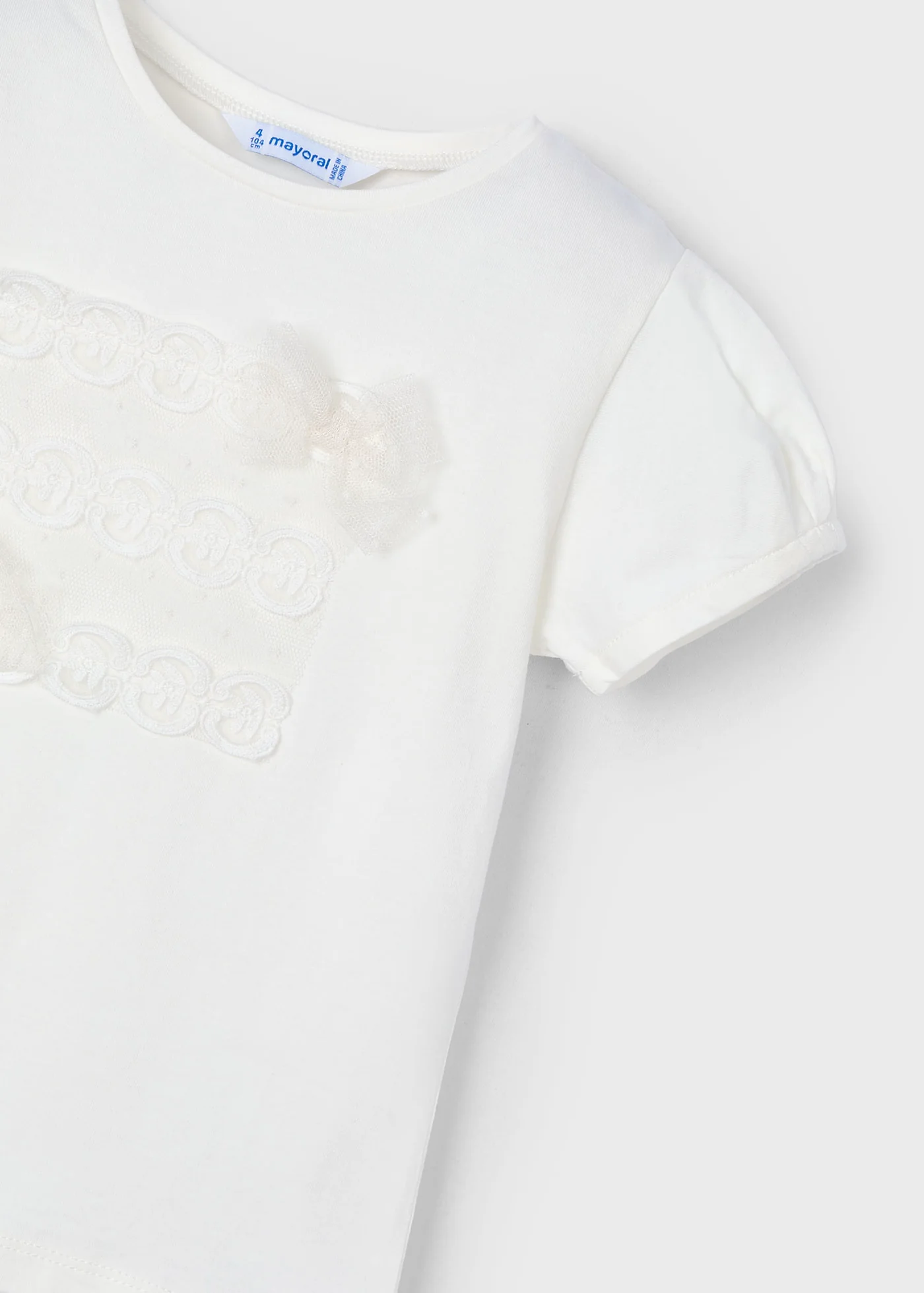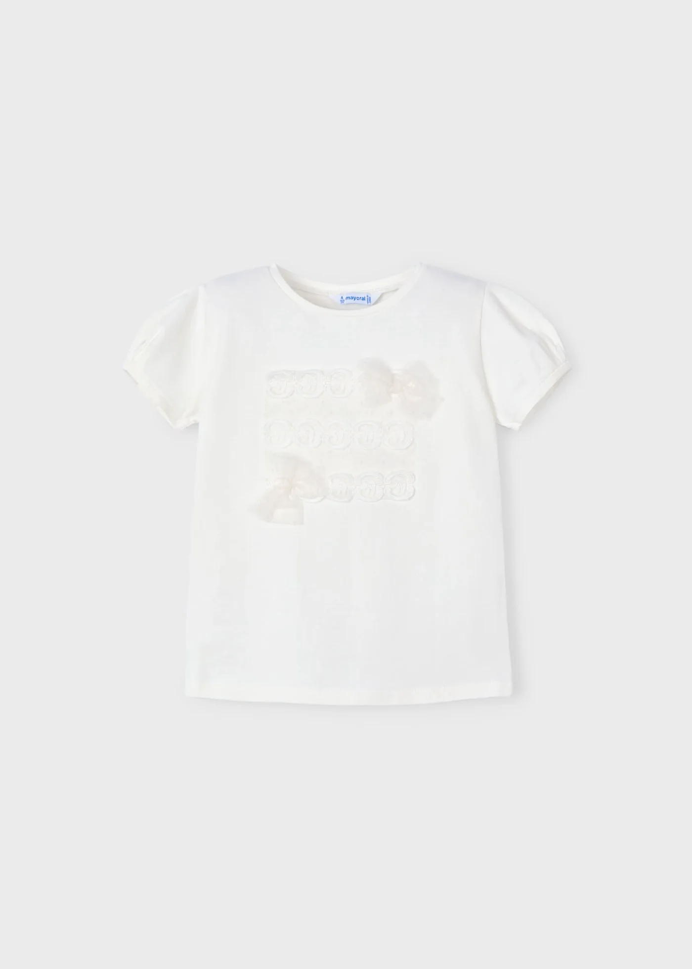 T-Shirt bambina Mayoral fiocchi plumetis panna