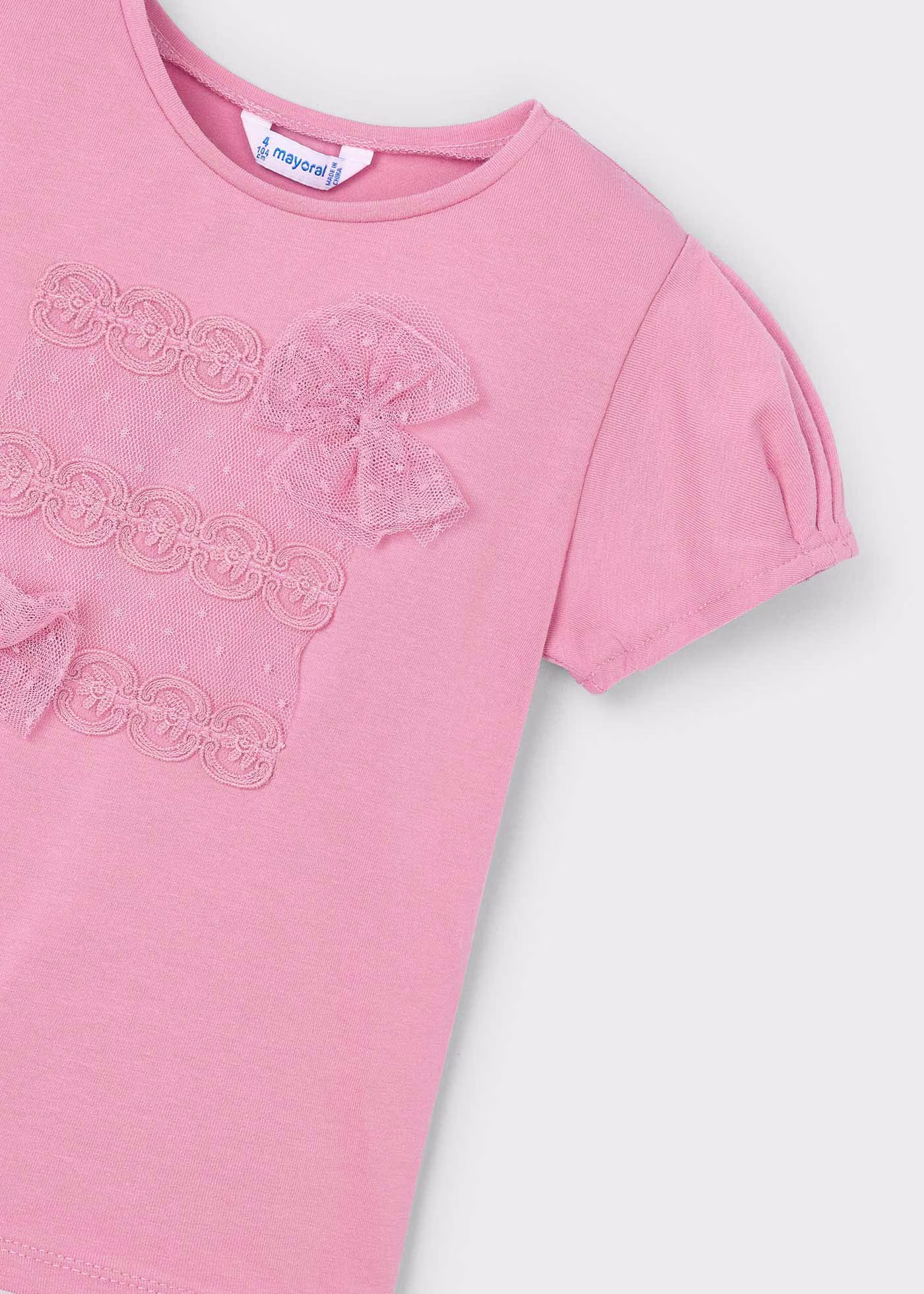 T-Shirt bambina Mayoral fiocchi plumetis rosato