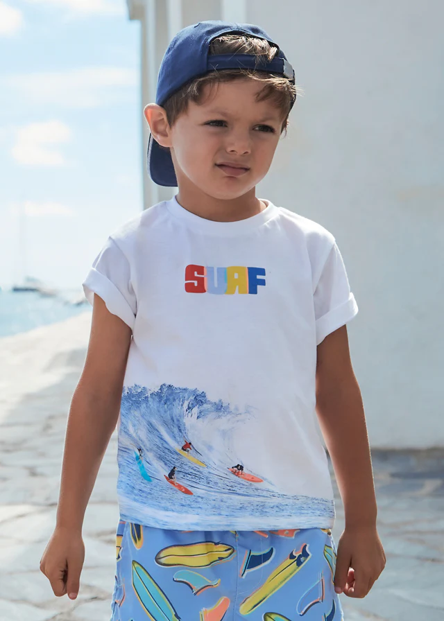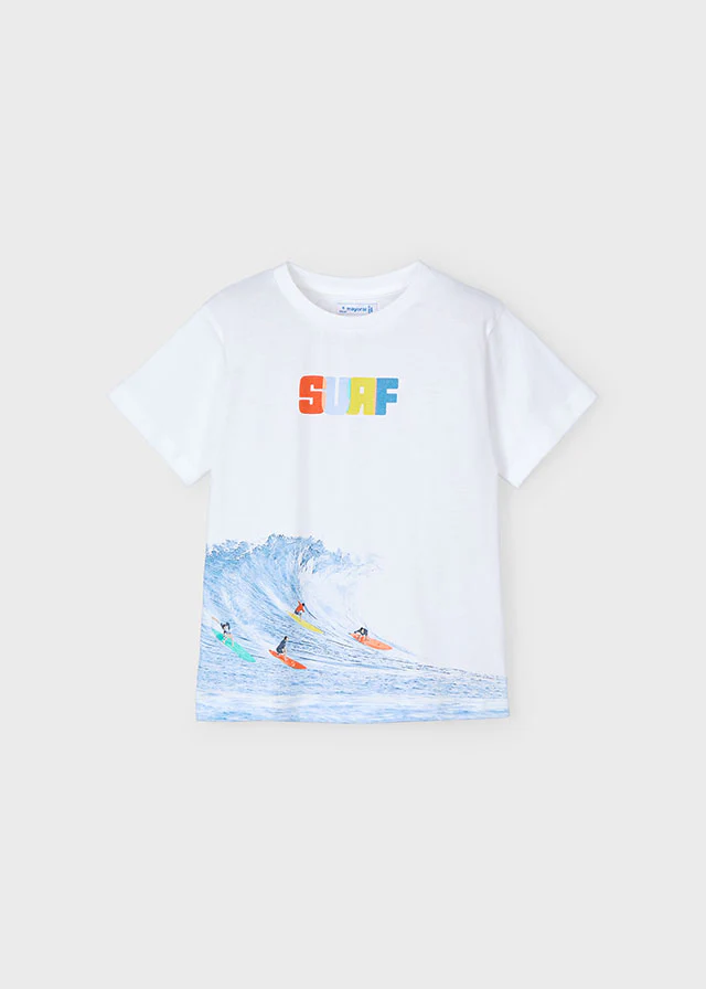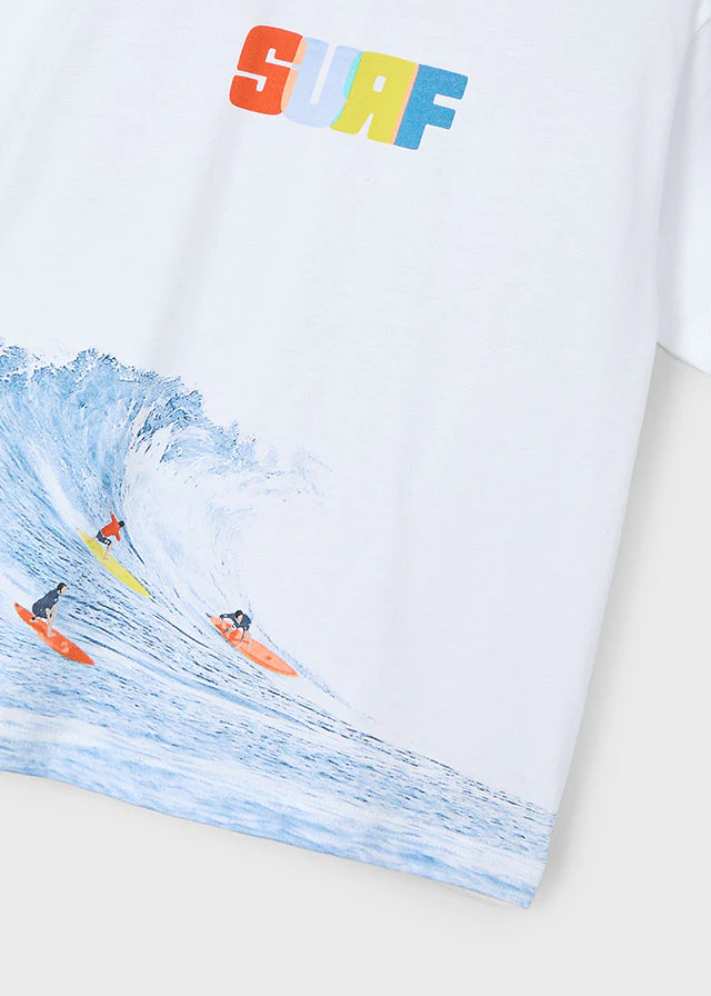 T-Shirt bambino Mayoral bianca stampa “onda surf”