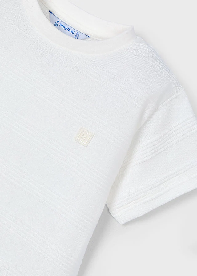 T-Shirt bambino Mayoral effetto righe bassorilievo color panna