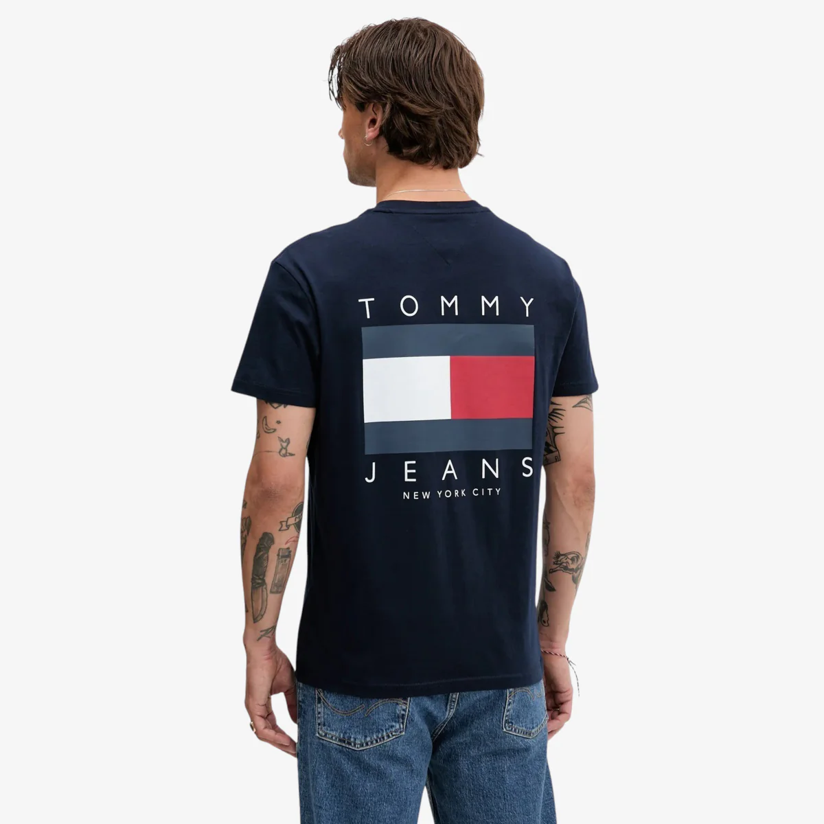 • Logo bandierina Tommy Jeans NYC sul petto e stampata oversize sul retro