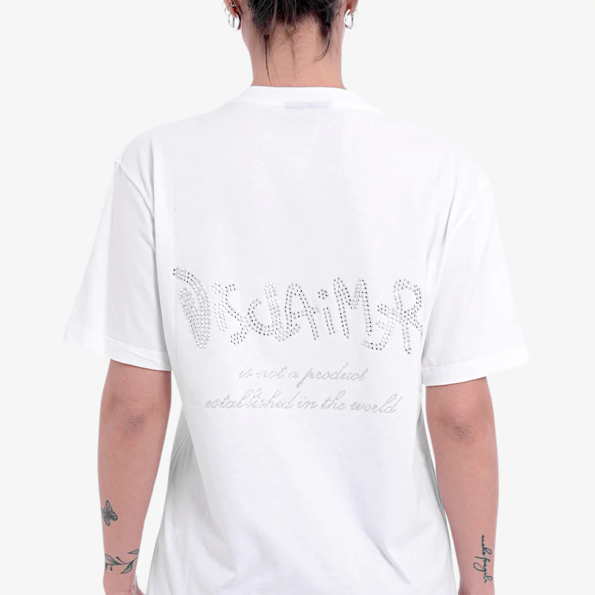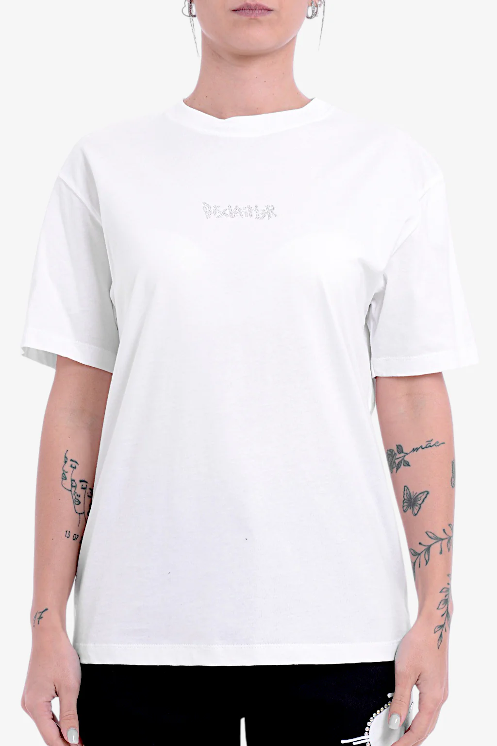 T-shirt Disclaimer da donna Caratteristiche della t-shirt: Girocollo Vestibilità comoda Maniche corte Piccolo logo con borchiette sul fronte della t-shirt Grande logo Disclaimer + scritte con borchiette sul retro