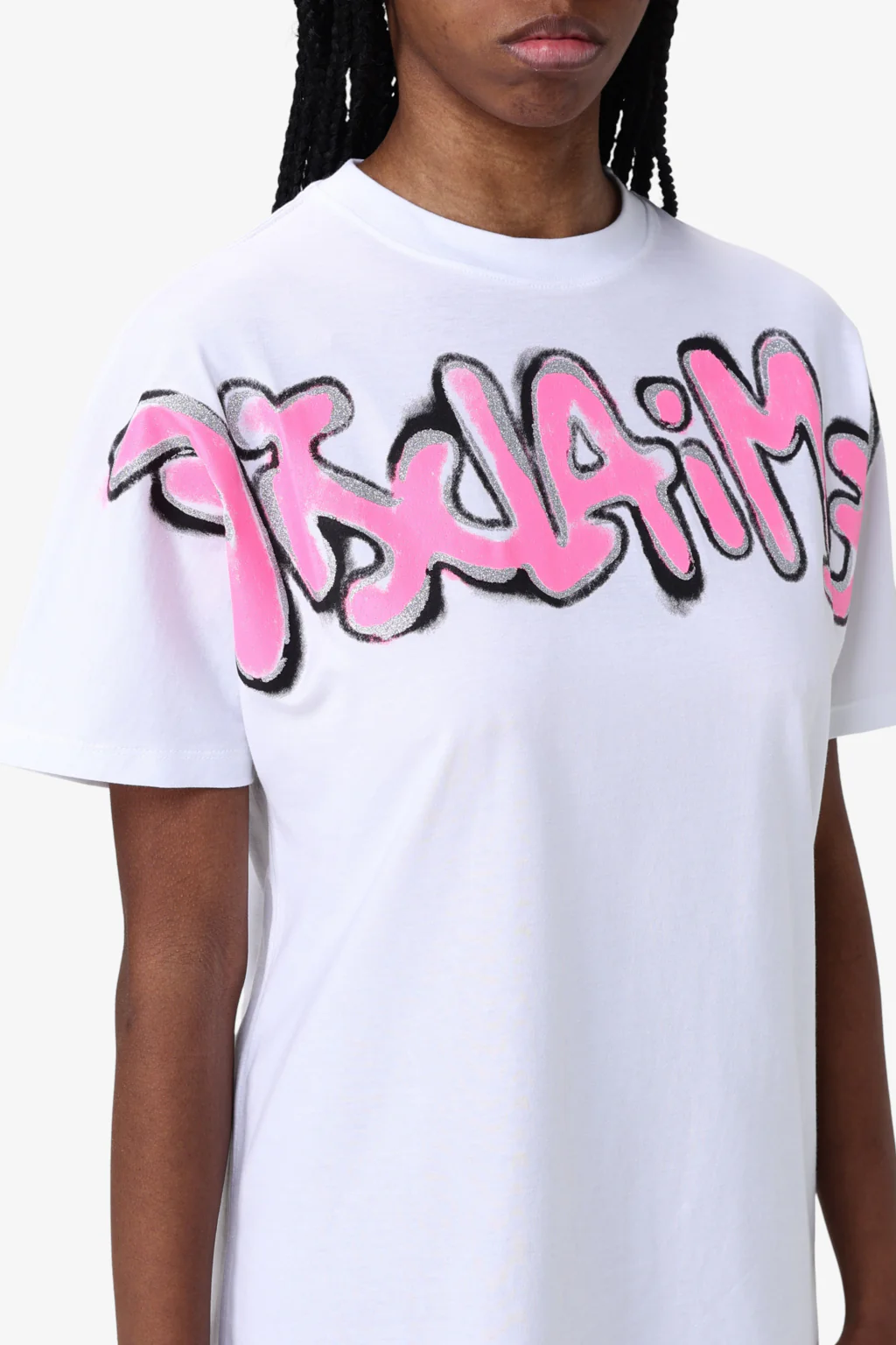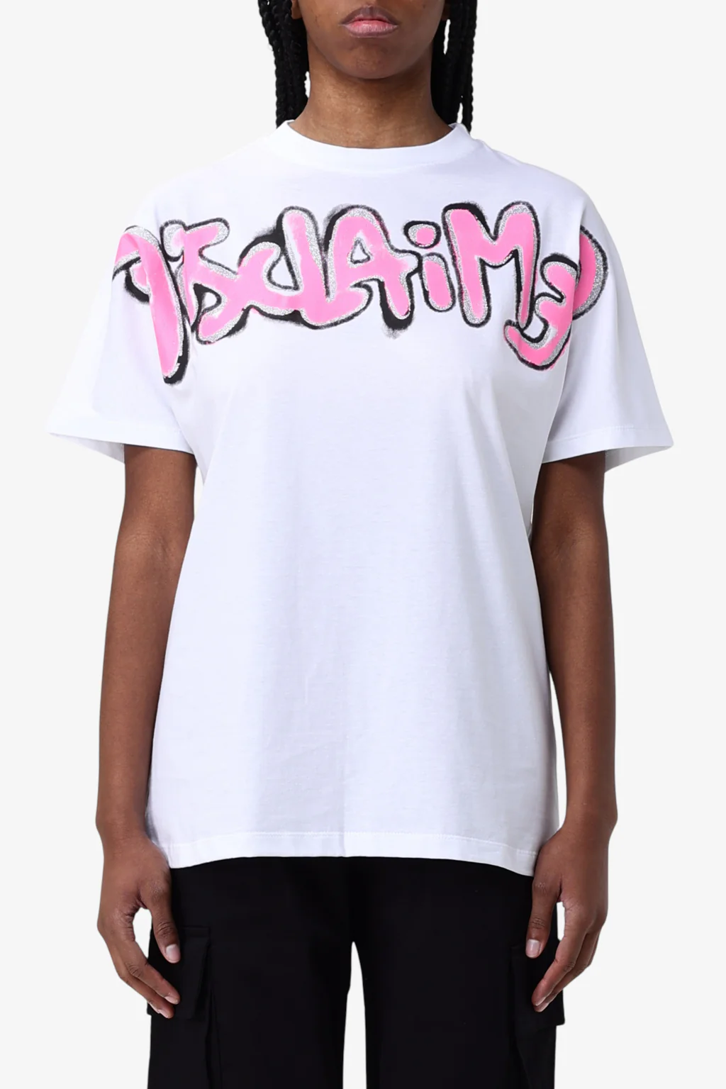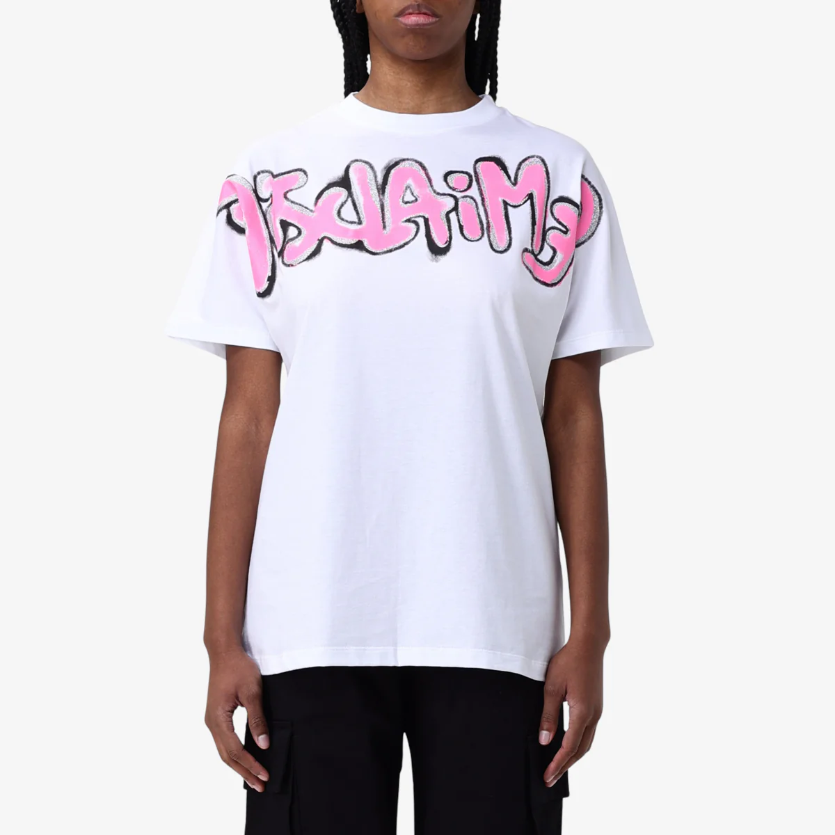 - Grande logo Disclaimer spray flou + glitter stampato sul fronte della t-shirt