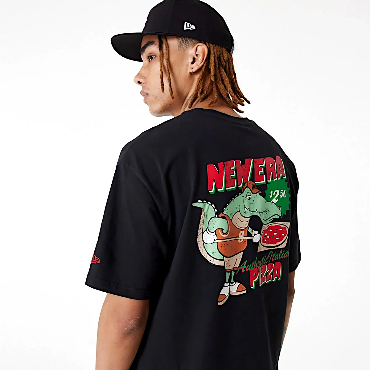 T-Shirt pizza alligator New Era da uomo Caratteristiche della t-shirt: Logo New Era Heritage sul petto a sinistra New Era Flag ricamata sulla manica sinistra Grafica Pizza Alligator sul retro T-shirt dalla vestibilità oversize