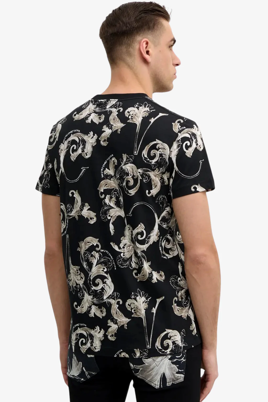 La T-shirt in jersey di cotone a maniche corte con vestibilità slim presenta una stampa Outline Barocco all-over.