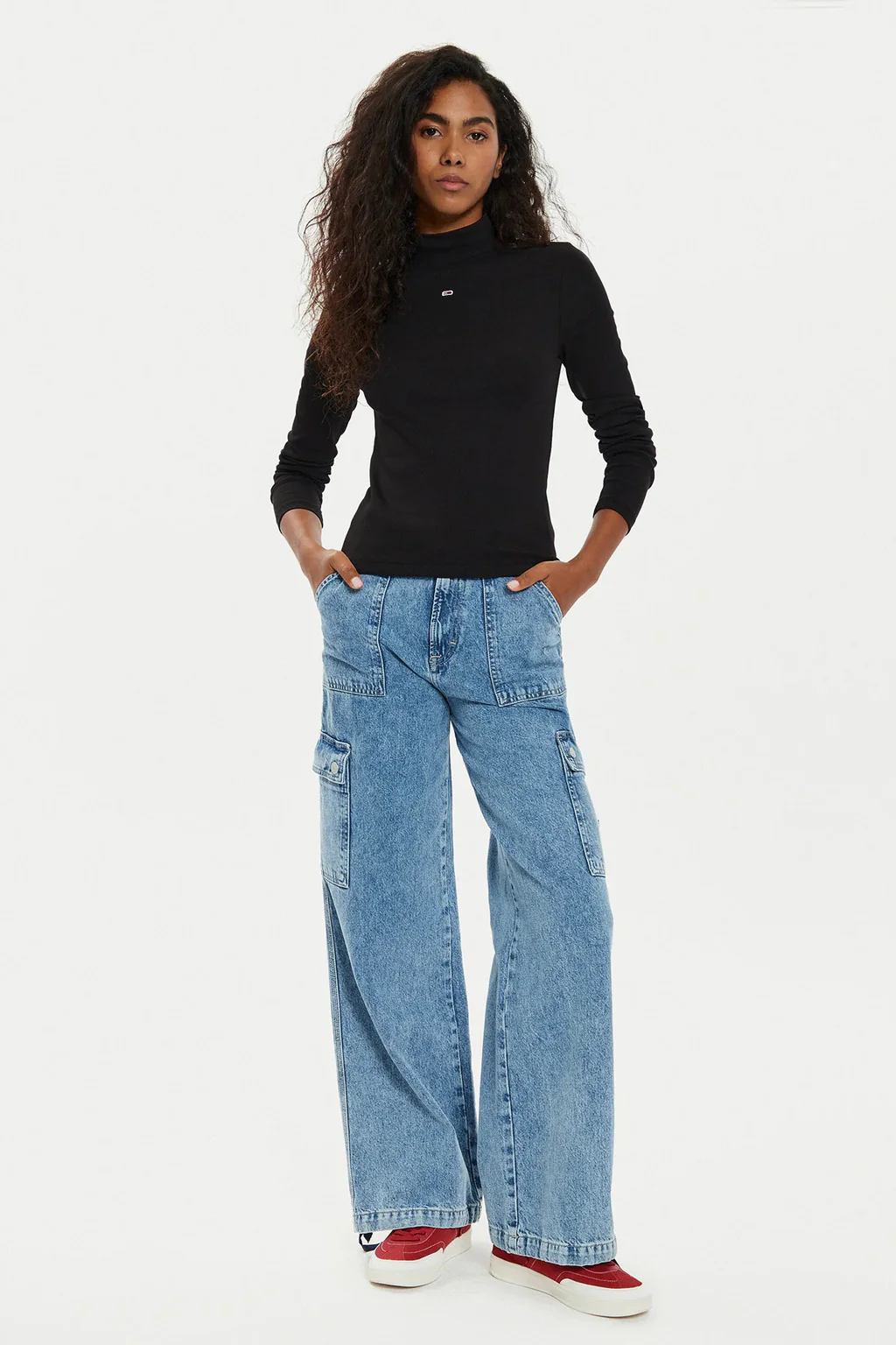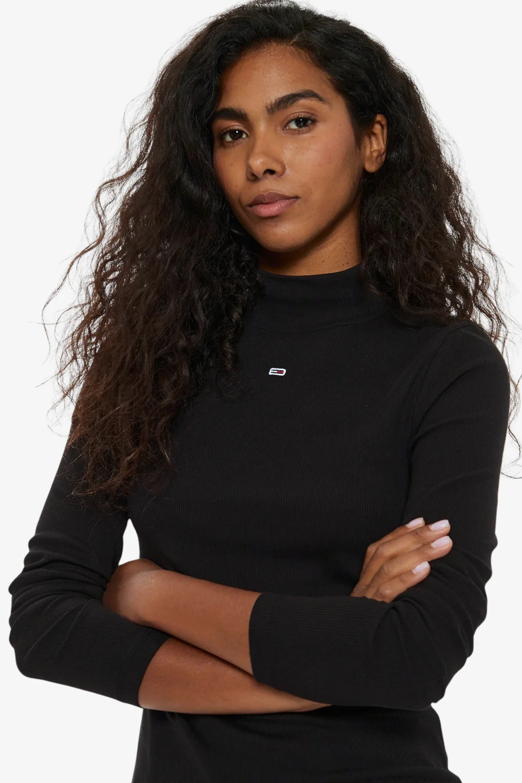 T-Shirt Tommy Jeans da donna La t-shirt a maniche lunghe, realizzata in cotone stretch con finitura a coste, si distingue per il caldo collo a lupetto. Caratteristiche della t-shirt: • Texture a coste• Collo a lupetto• Bandierina Tommy ricamata sul petto• Elasticizzata