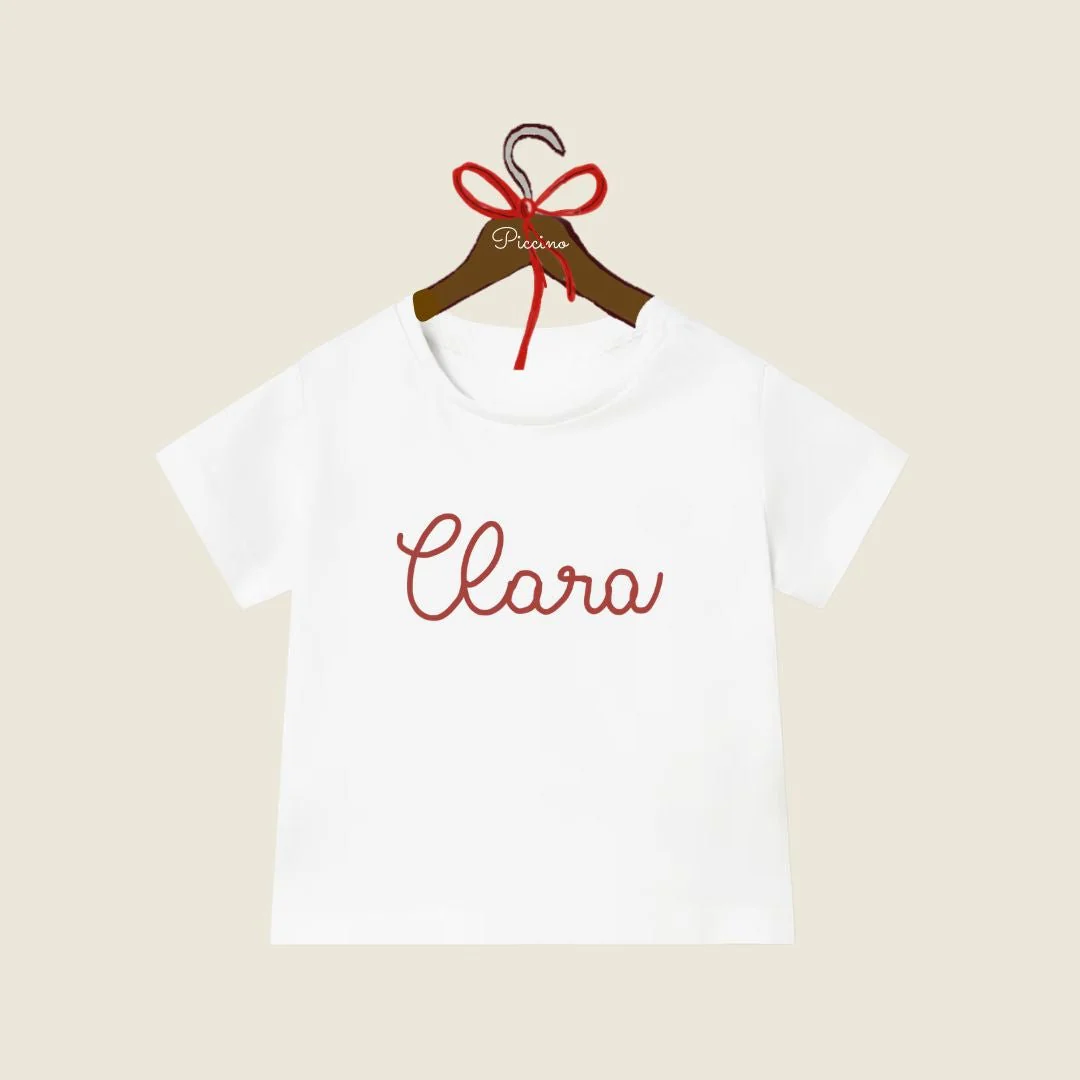 Personalizzazione esclusiva: Scegli il nome del tuo bambino o un messaggio speciale da far ricamare. Ogni t-shirt diventa così un pezzo unico, pensato appositamente per il tuo piccolo. È l’idea regalo perfetta per una nascita o un compleanno, creando un ricordo indelebile.