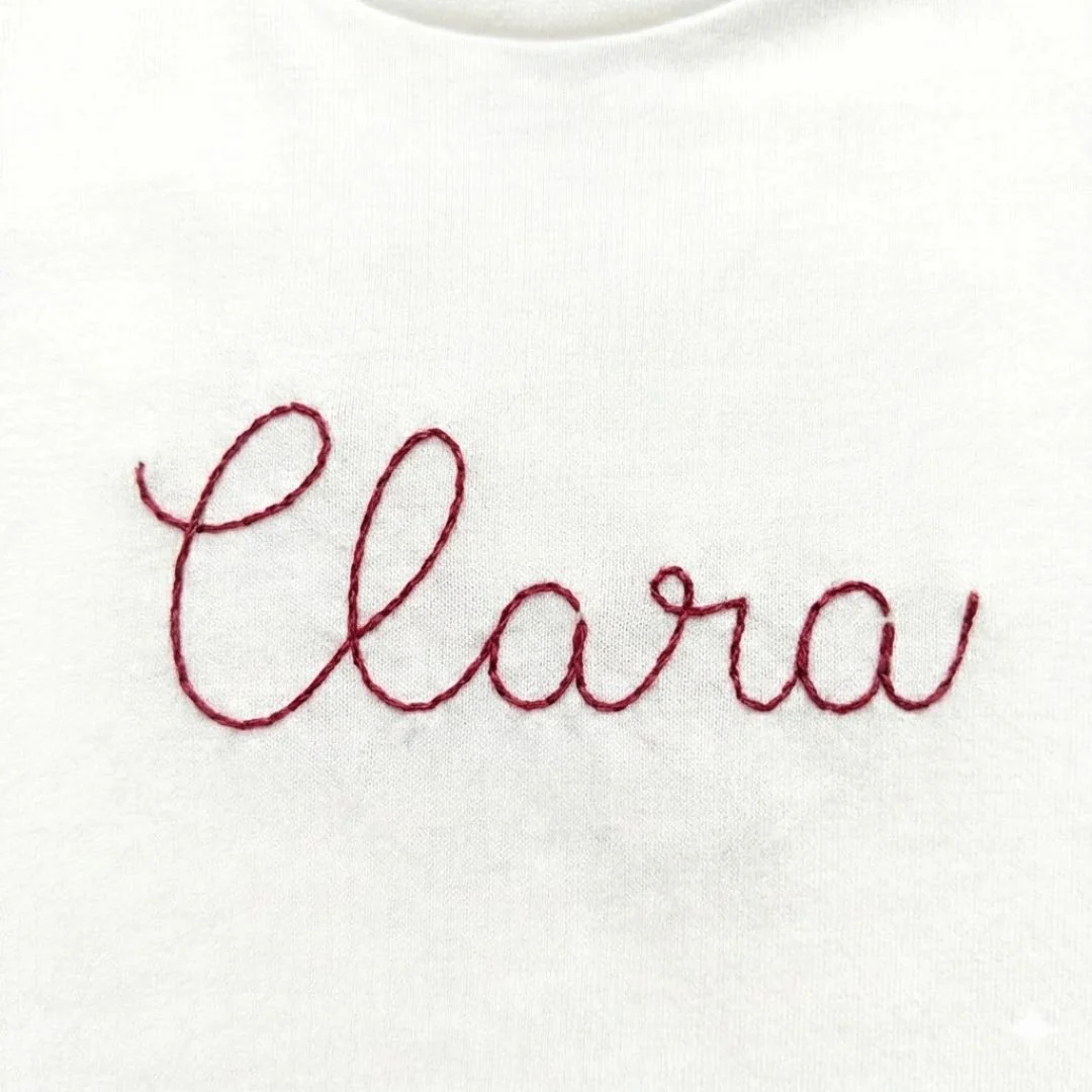 Ricamo a mano: I nomi vengono ricamati a mano con cura e maestria, come si faceva un tempo, per un tocco artigianale che aggiunge calore e autenticità. Il ricamo artigianale Made in Italy è sinonimo di qualità superiore e attenzione al dettaglio.