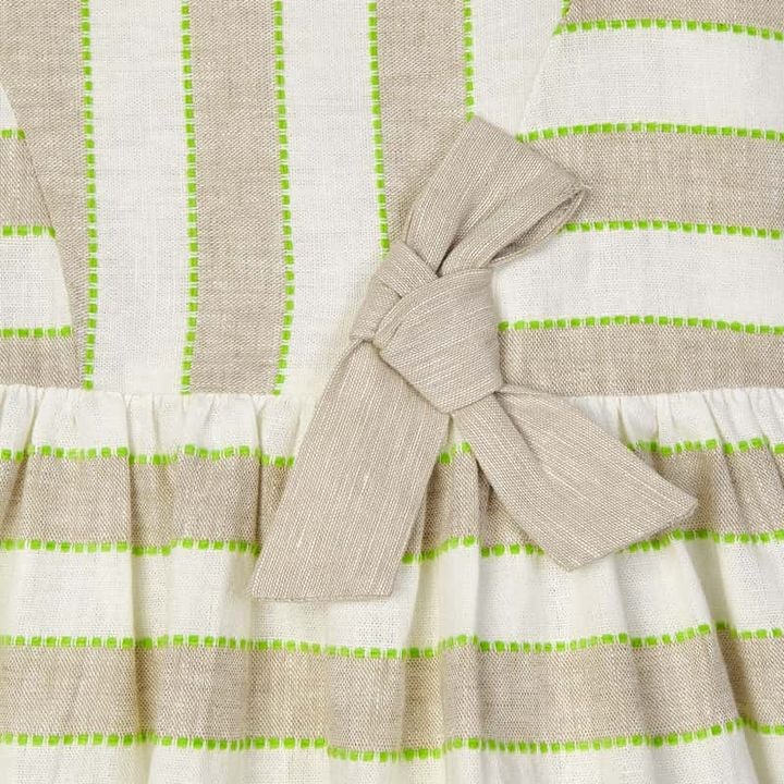Vesito smanicato in lino bambina Mayoral righe beige e verdi