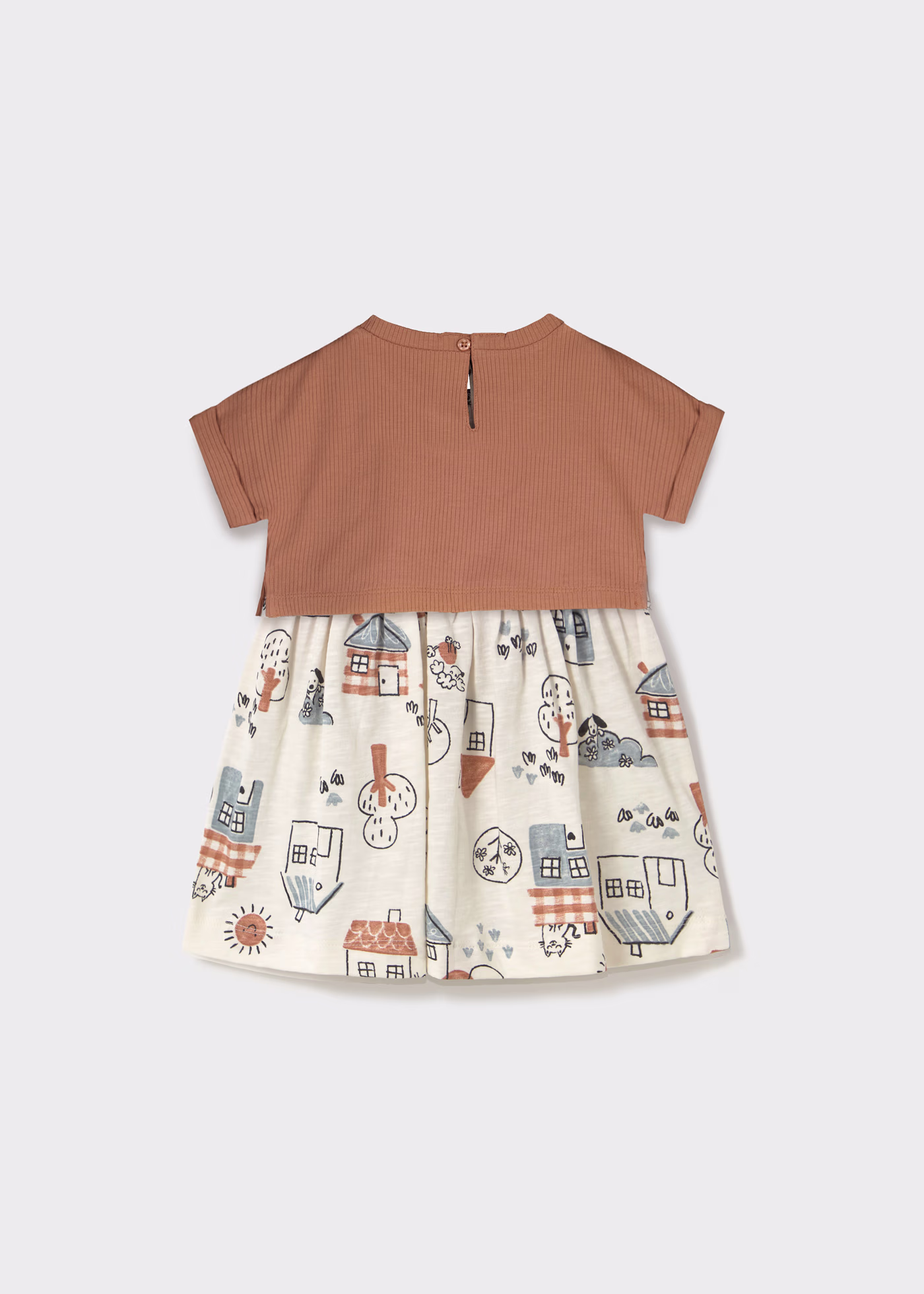 Vestito 2 pezzi stampato con top neonata Mayoral “Case” caramello