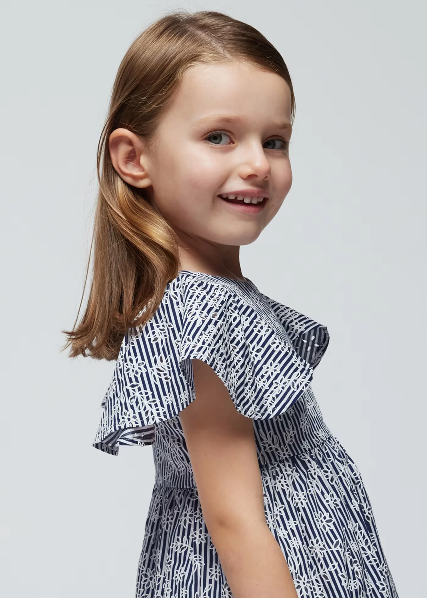 Vestito bambina Mayoral fantasia floreale righe blu