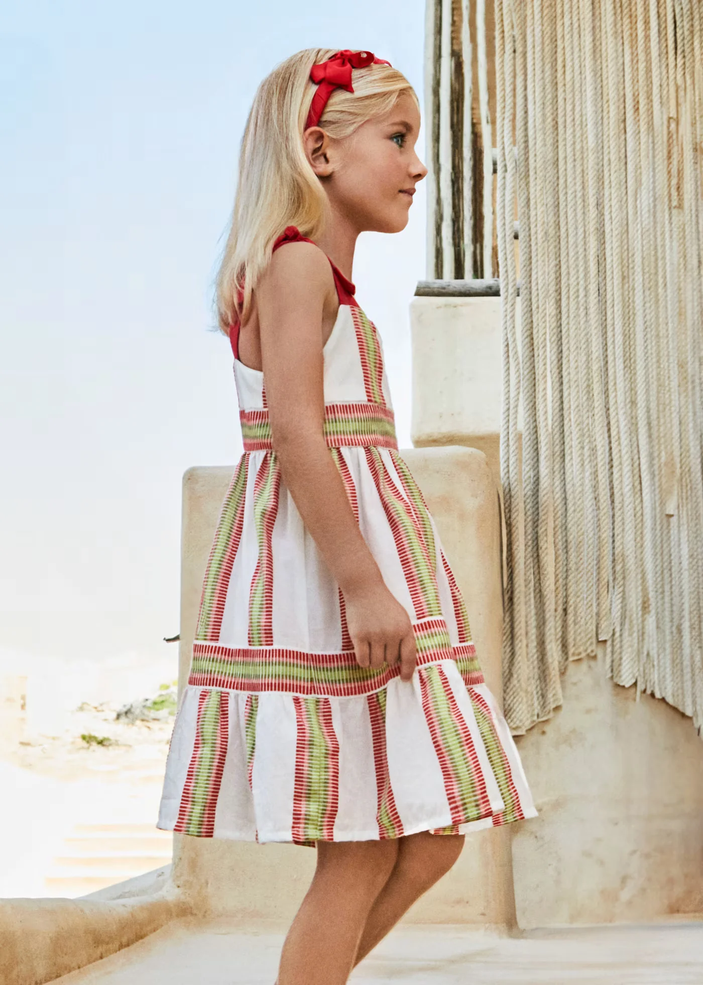 Vestito bretella fresco cotone bambina Mayoral righe granatina
