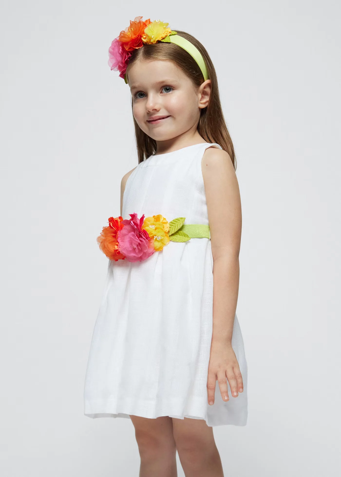 Abito bianco floreale bambina Mayoral con fusciacca fiori