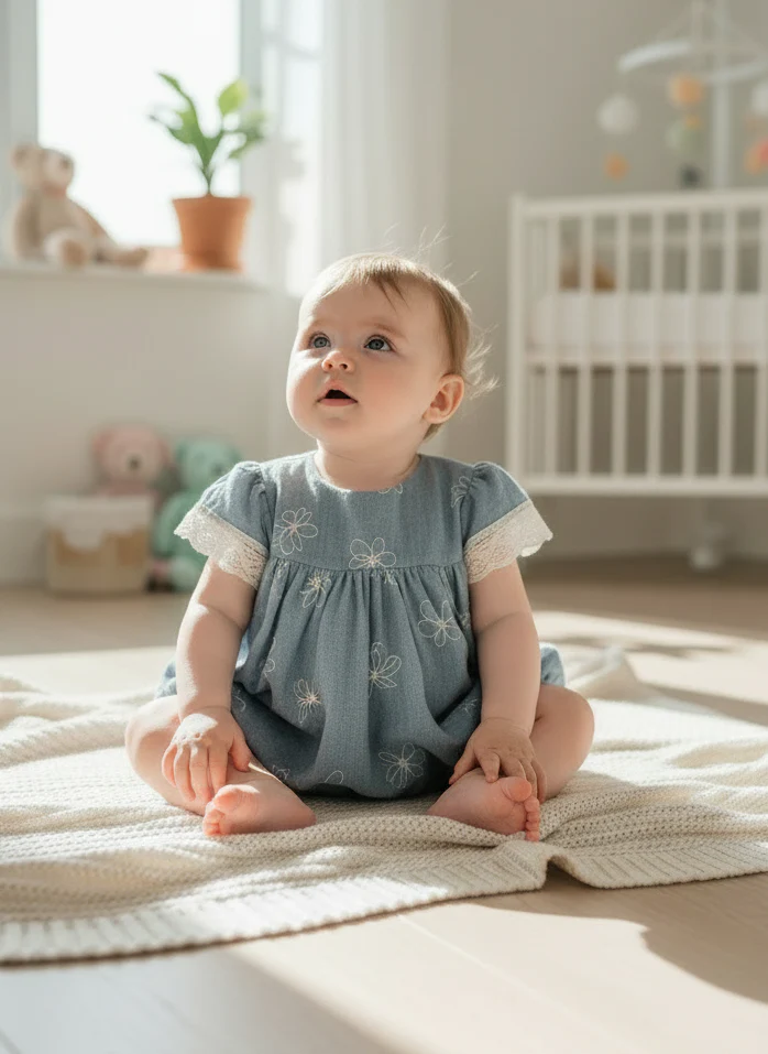 Vestito con copri pannolino neonata Mayoral Newborn jeans ricami