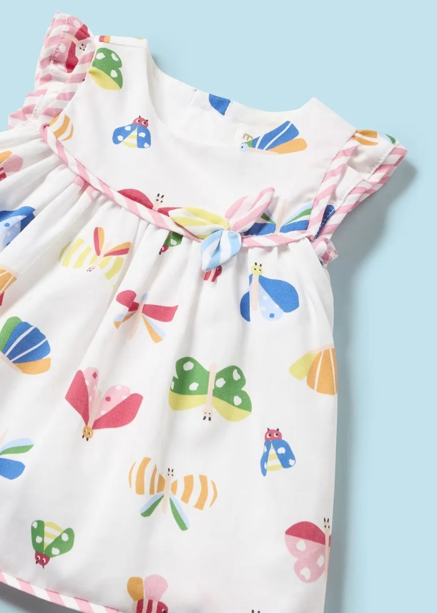 Vestito con copri pannolino satinato neonata Newborn Mayoral farfalle