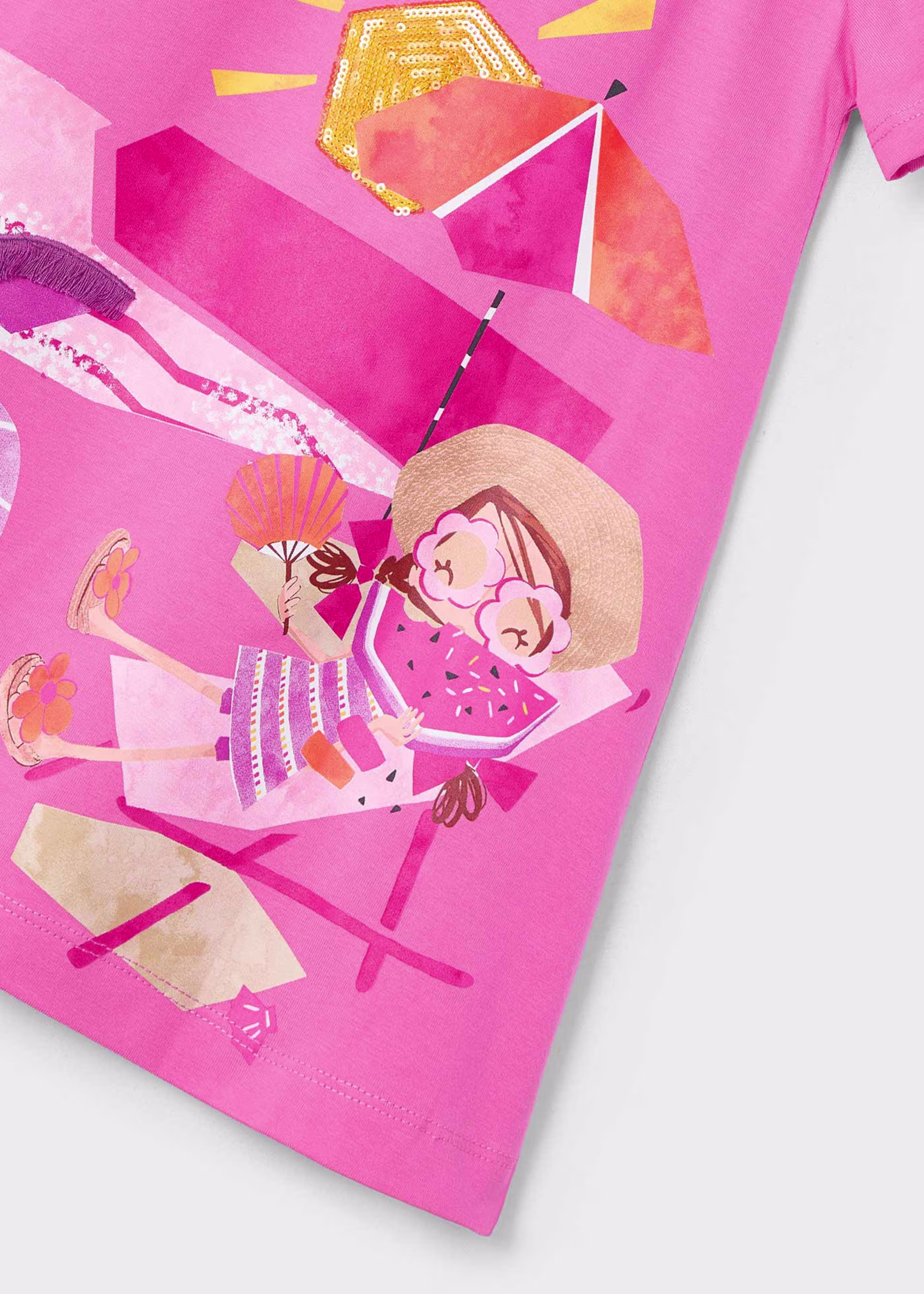 Vestito spalla fina bambina Mayoral stampa “Mare” rosa camelia