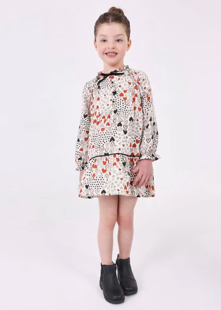 Vestito stampato filo metallizzato bambina Mayoral “Cuori”