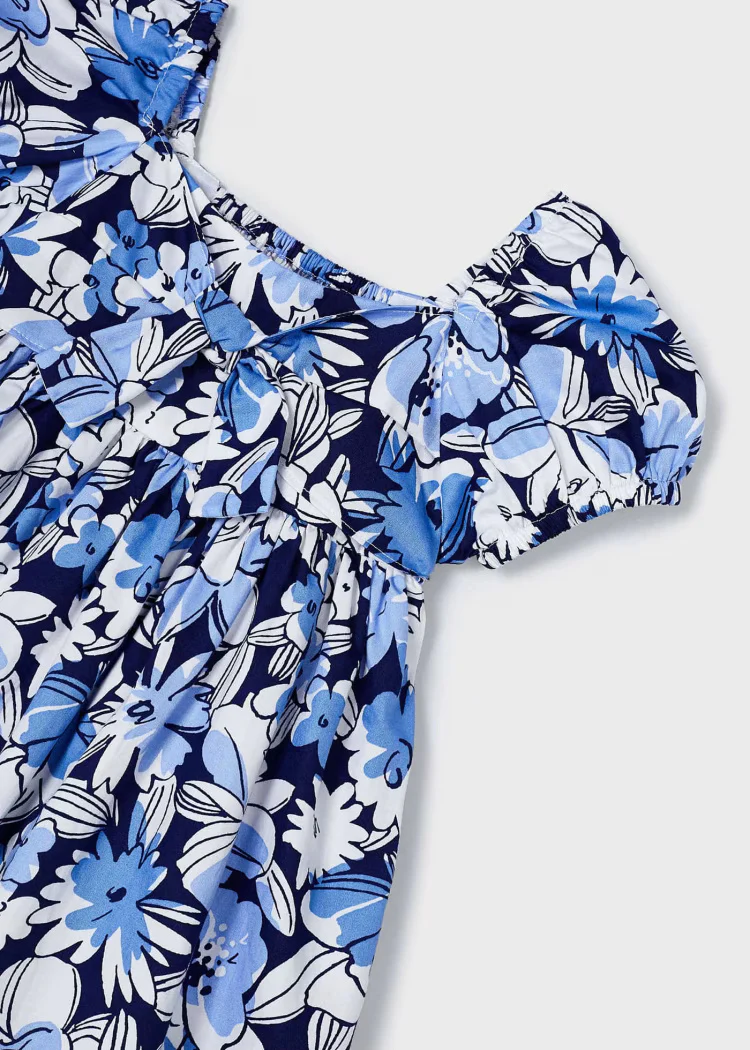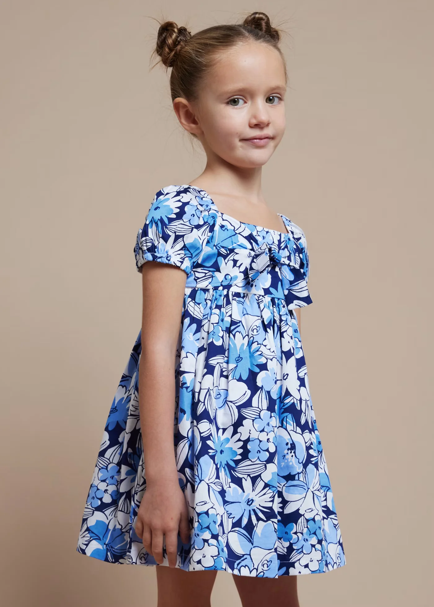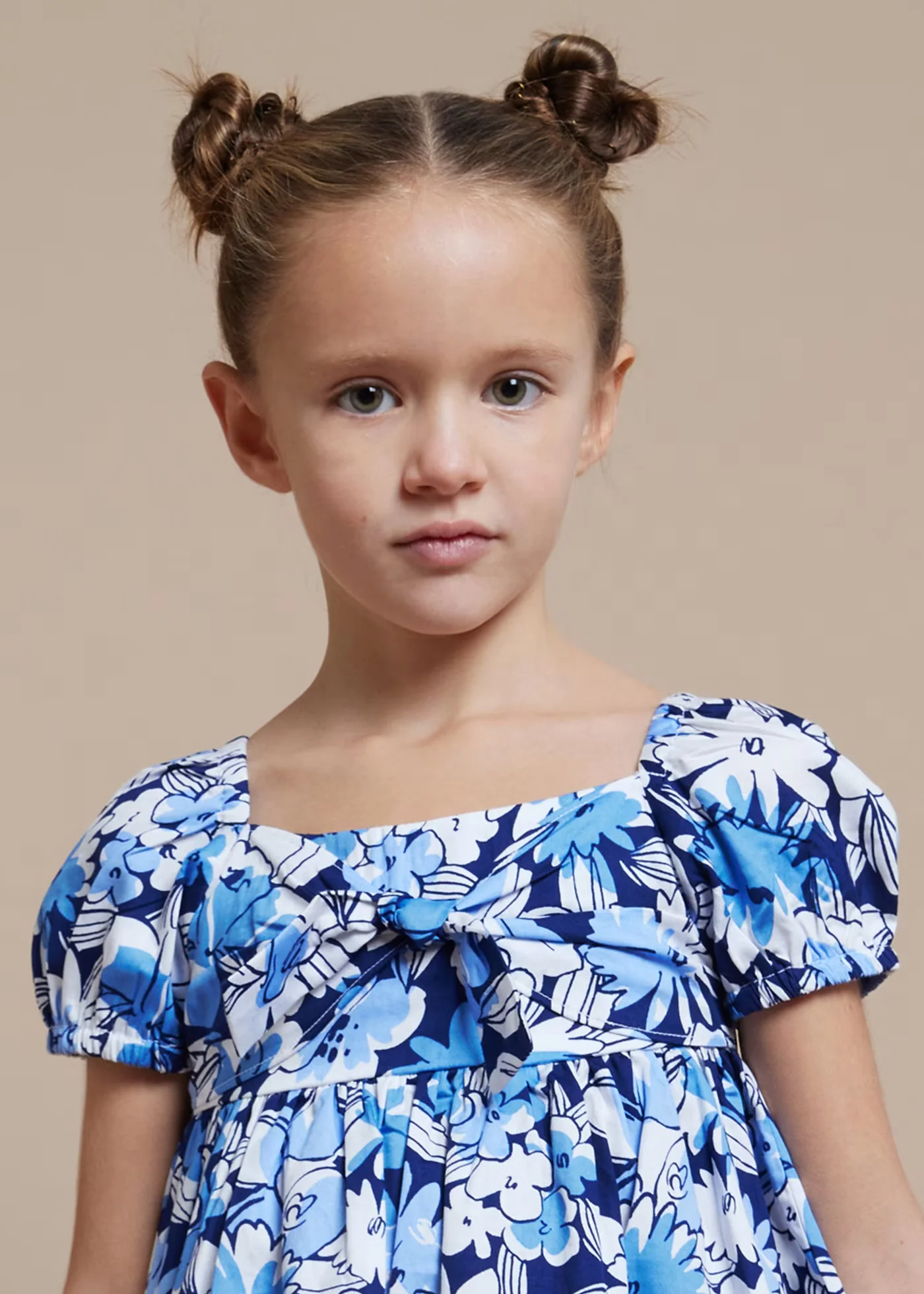 Vestito stampato fresco cotone bambina Mayoral blu floreale