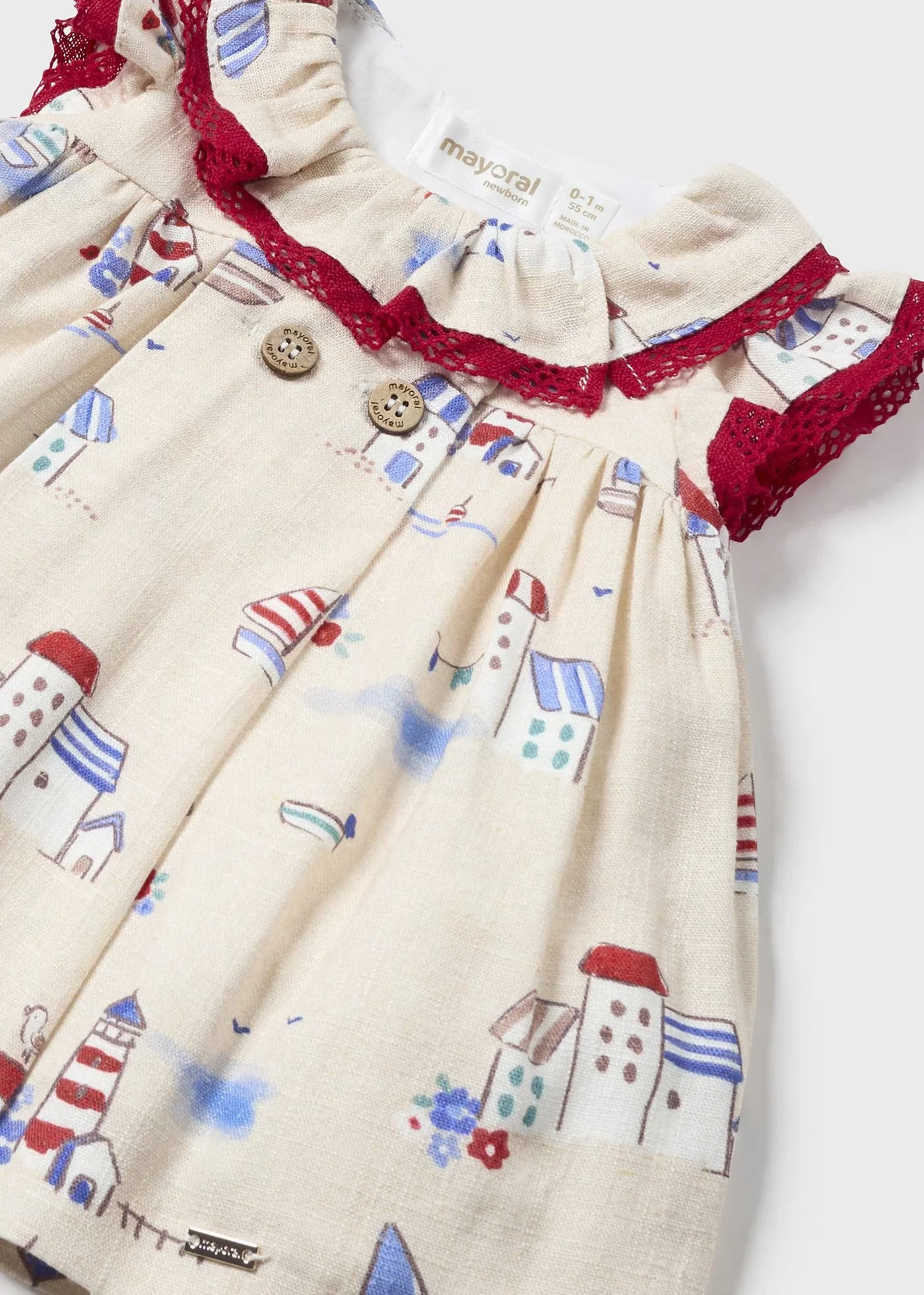 Vestito stampato lino con copri pannolino neonata Mayoral Newborn