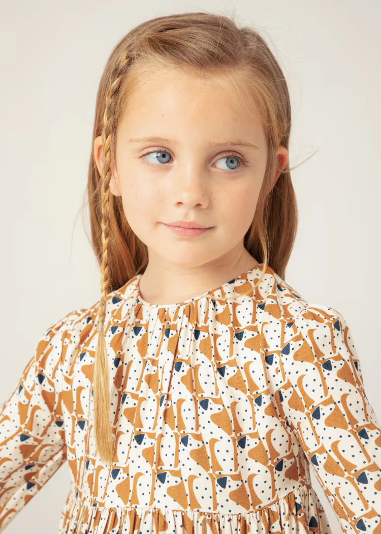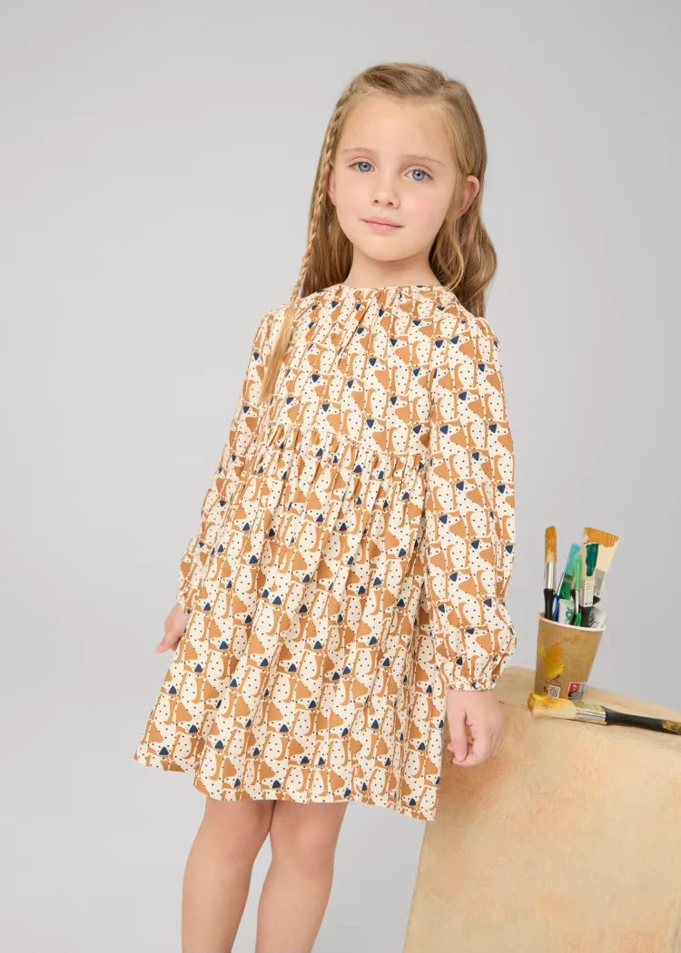 Vestito stampato morbido bambina Mayoral caramello fantasia cani